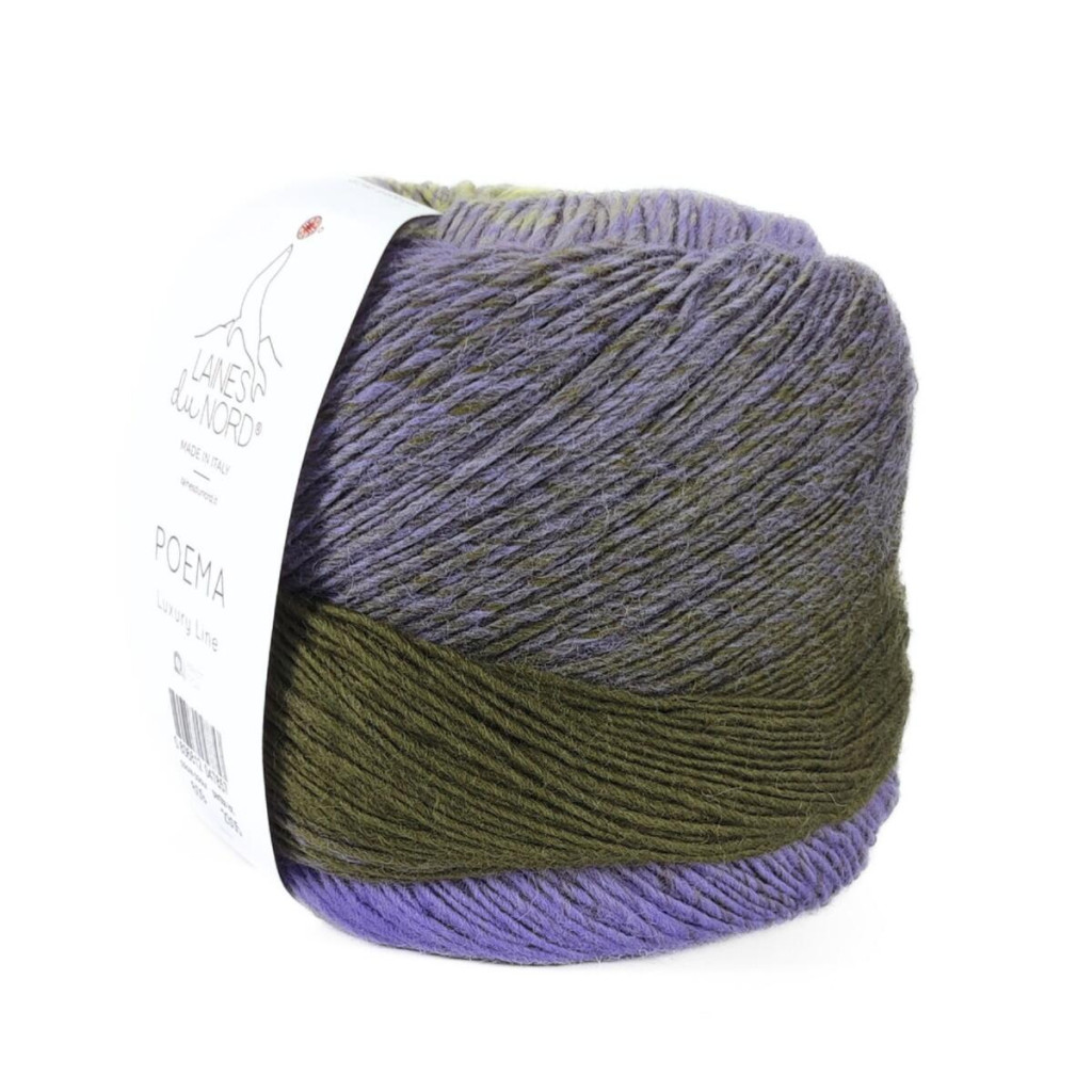 Пряжа Laines du Nord Poema — це 100% вовна з плавними переходами кольорів, які формують ефект градієнта. Поєднання відтінків створює гармонійне полотно без необхідності змінювати нитку під час роботи.