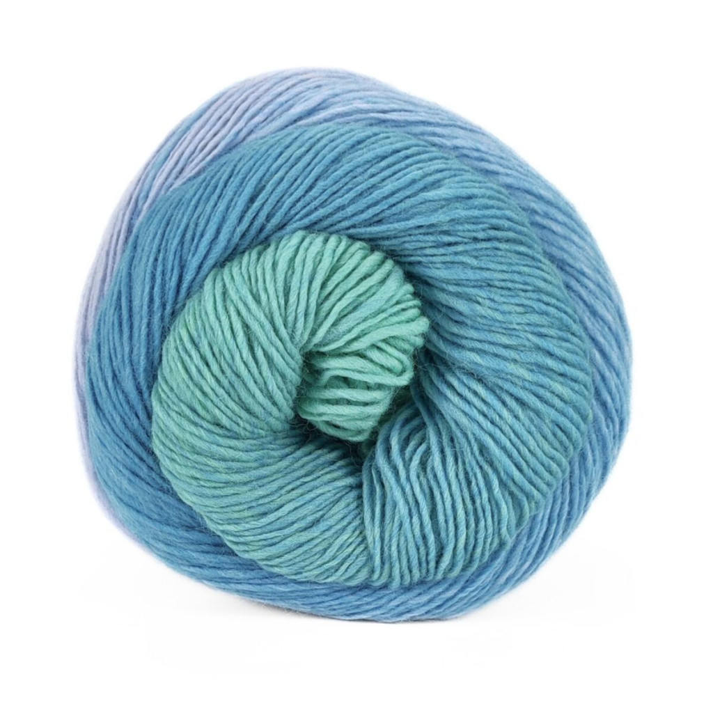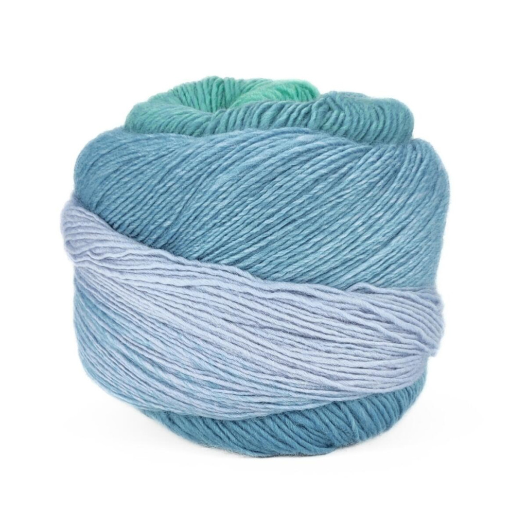 Пряжа Laines du Nord Poema — це 100% вовна з плавними переходами кольорів, які формують ефект градієнта. Поєднання відтінків створює гармонійне полотно без необхідності змінювати нитку під час роботи.