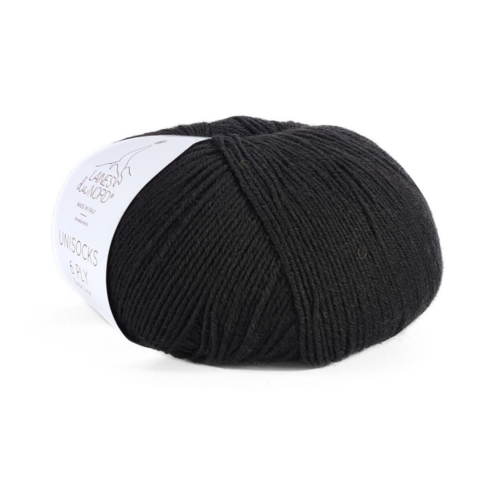 35 Шкарпеткова Пряжа Laines du Nord Unisock 6 PLY, 100г - 400м, чорний, 75% вовна, 25% нейлон