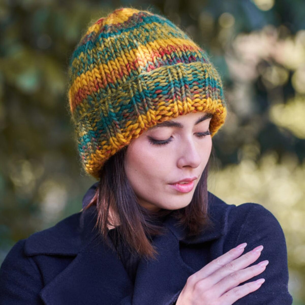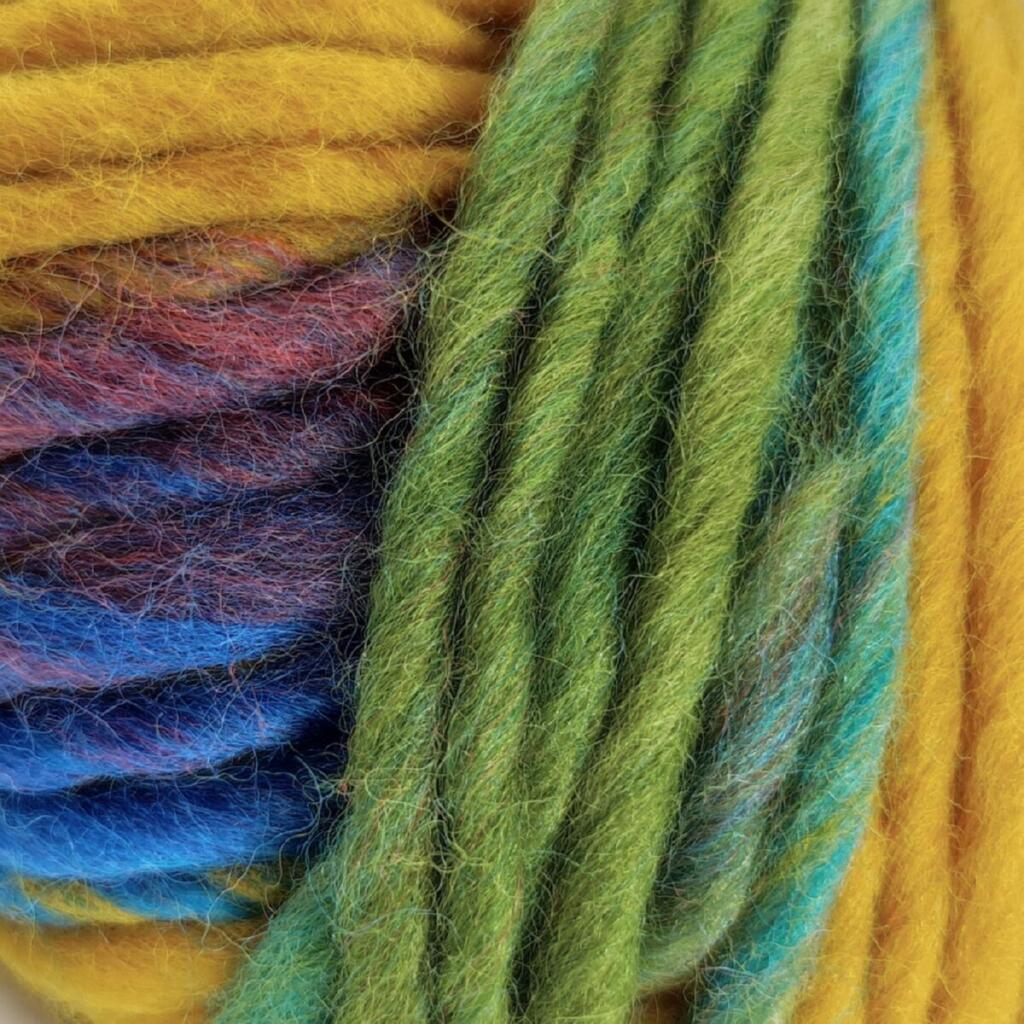 М’яка вовняна структура забезпечує тепло та комфорт у холодну пору року. Полотно виходить виразним, з об’ємною фактурою та насиченим кольоровим ритмом без складних візерунків.