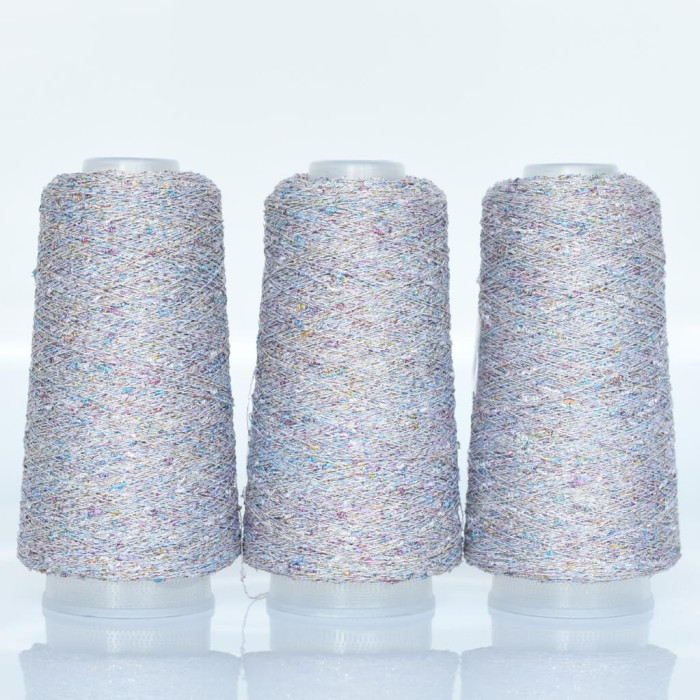 – декоративна пряжа з металізованим або глянцевим відтінком.