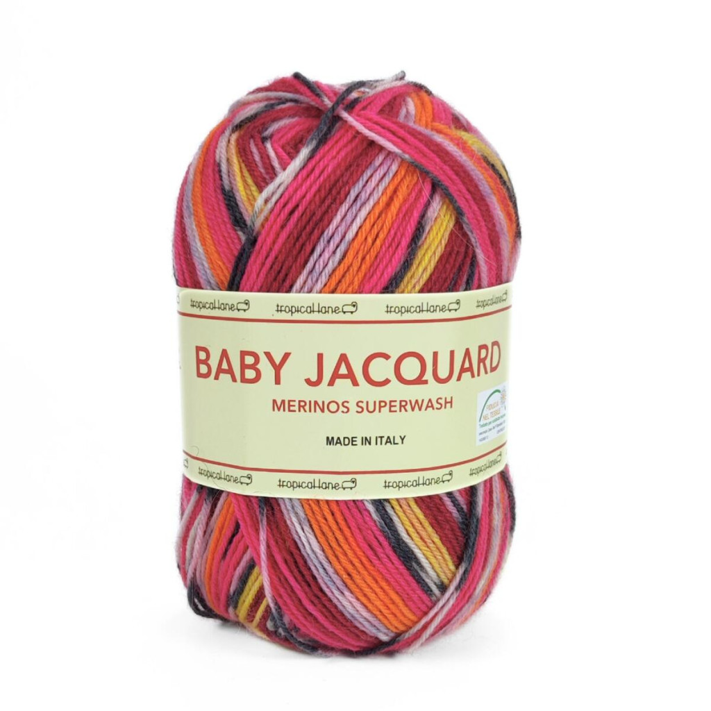 Пряжа Tropical Lane Baby Jacquard — м’яка та практична пряжа з жакардовим ефектом, створена для акуратних і комфортних в’язаних виробів. Вона має тонку, рівну структуру та формує красиві візерунки без потреби у зміні ниток під час в’язання.