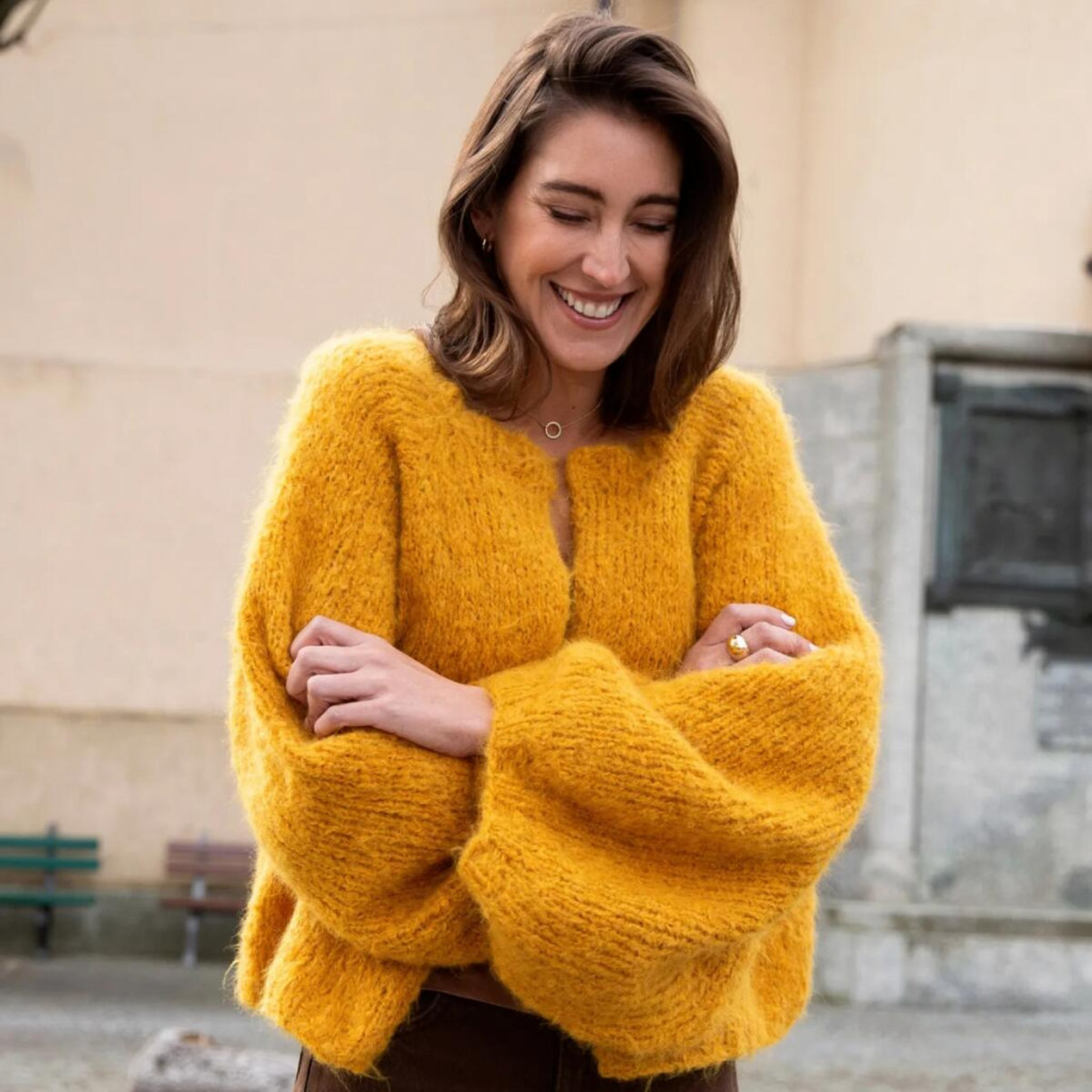 Альпака та меринос надають пряжі тепла й м’якості, а акрил і поліамід підвищують зносостійкість, допомагають полотну краще тримати форму та спрощують догляд за готовими речами. Завдяки збалансованому складу вироби виходять теплими, але не важкими.