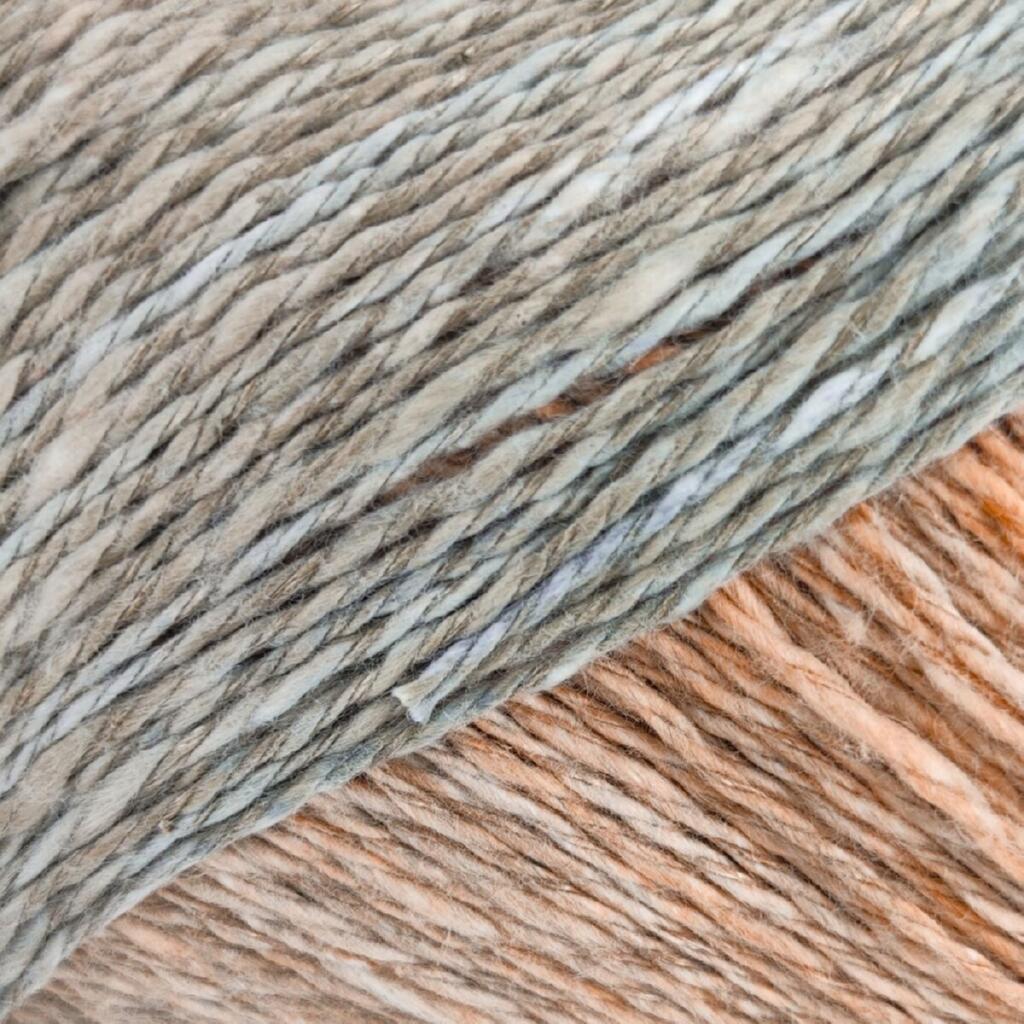Бавовна забезпечує комфорт у носінні, м’якість і повітропроникність, а волокна коноплі додають структурності, зносостійкості та легкого природного характеру полотну. Меланжеве забарвлення робить кожен виріб унікальним і дозволяє отримати цікавий візуальний ефект навіть у простому в’язанні.
