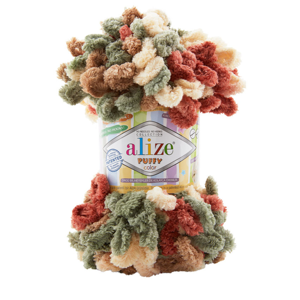 Пряжа Puffy Color це м'які довгошерсті плюшеві нитки, які складаються з однакових великих петель (петлі зафіксовані) для в'язання руками без спиць. Пряжа Алізе Пуффі Колор відмінно підійде для крупної в'язки. Особливо добре крупне в'язання виглядає у дитячих іграшках, шалях, шапках, пледах - великих, об'ємних, але дивно легких. Шляхом того, що в'язка не щільна, процес йде дуже швидко, і ви самі не помітите, як закінчите роботу.