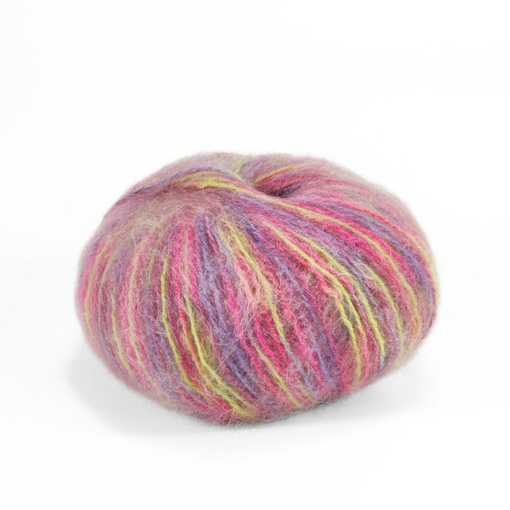 Мохер надає пряжі характерної пухнастості та повітряності, а вовна забезпечує тепло й стабільність полотна. Мультіколорне фарбування робить кожен виріб унікальним і дозволяє отримати ефектний результат навіть у найпростішому в’язанні.