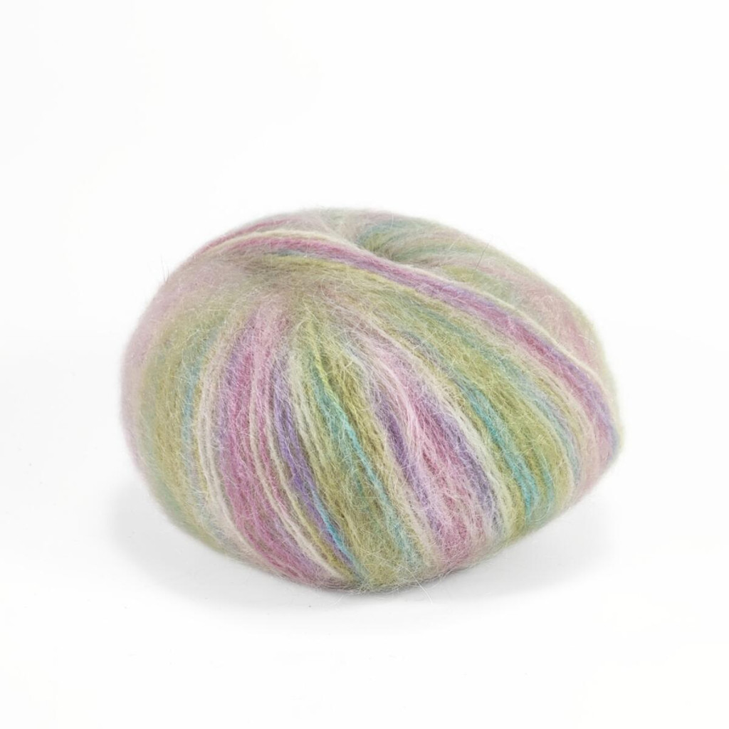Мохер надає пряжі характерної пухнастості та повітряності, а вовна забезпечує тепло й стабільність полотна. Мультіколорне фарбування робить кожен виріб унікальним і дозволяє отримати ефектний результат навіть у найпростішому в’язанні.