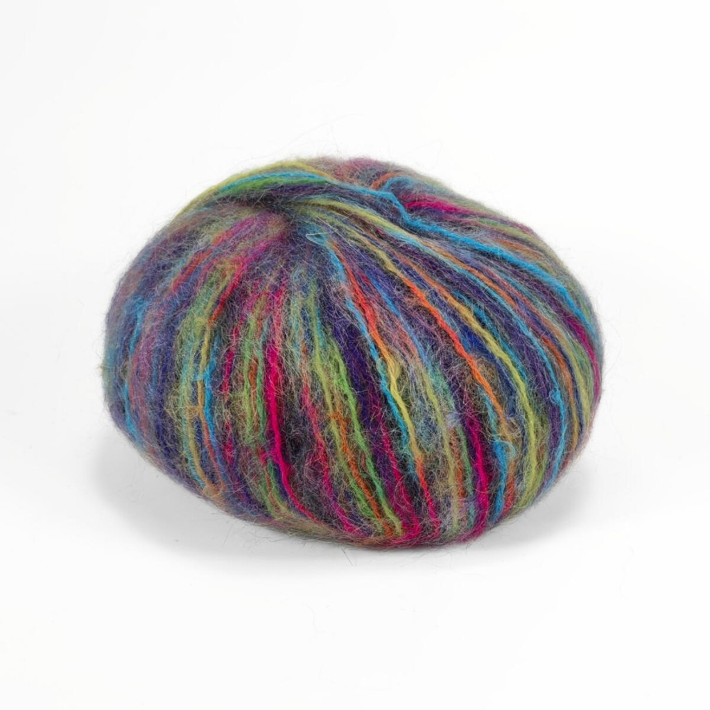 Мохер надає пряжі характерної пухнастості та повітряності, а вовна забезпечує тепло й стабільність полотна. Мультіколорне фарбування робить кожен виріб унікальним і дозволяє отримати ефектний результат навіть у найпростішому в’язанні.