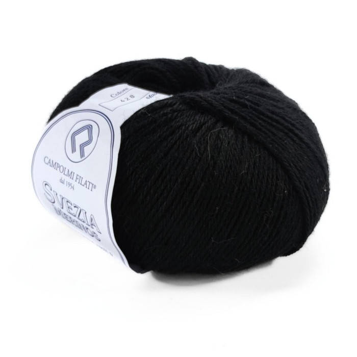 428 Пряжа Campolmi Filati Svezia, 100г - 250м, чорний, 50% вовна, 50% акрил