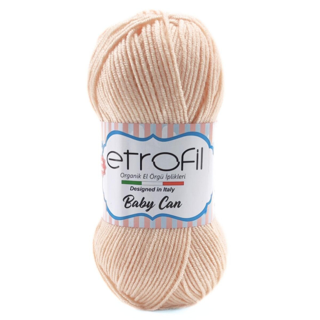 Пряжа Etrofil Baby Can — це м’яка та приємна на дотик нитка з антипілінгового акрилу, яка чудово підходить для створення дитячих виробів. Вона має рівну структуру, легко ковзає по спицях і забезпечує комфортний процес в’язання.