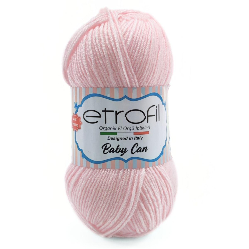 Пряжа Etrofil Baby Can — це м’яка та приємна на дотик нитка з антипілінгового акрилу, яка чудово підходить для створення дитячих виробів. Вона має рівну структуру, легко ковзає по спицях і забезпечує комфортний процес в’язання.