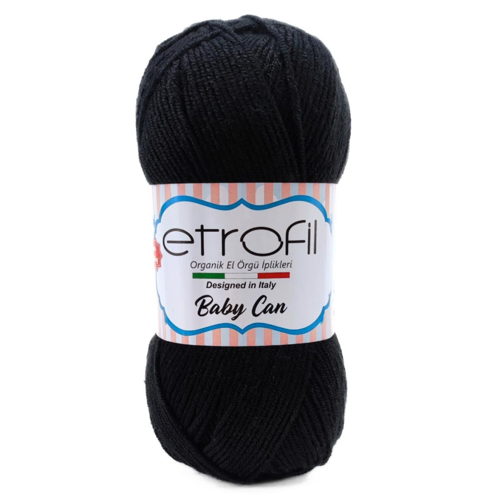 80092 Пряжа Etrofil Baby Can, 100г - 250м, чорний, 100% акрил антипілінг