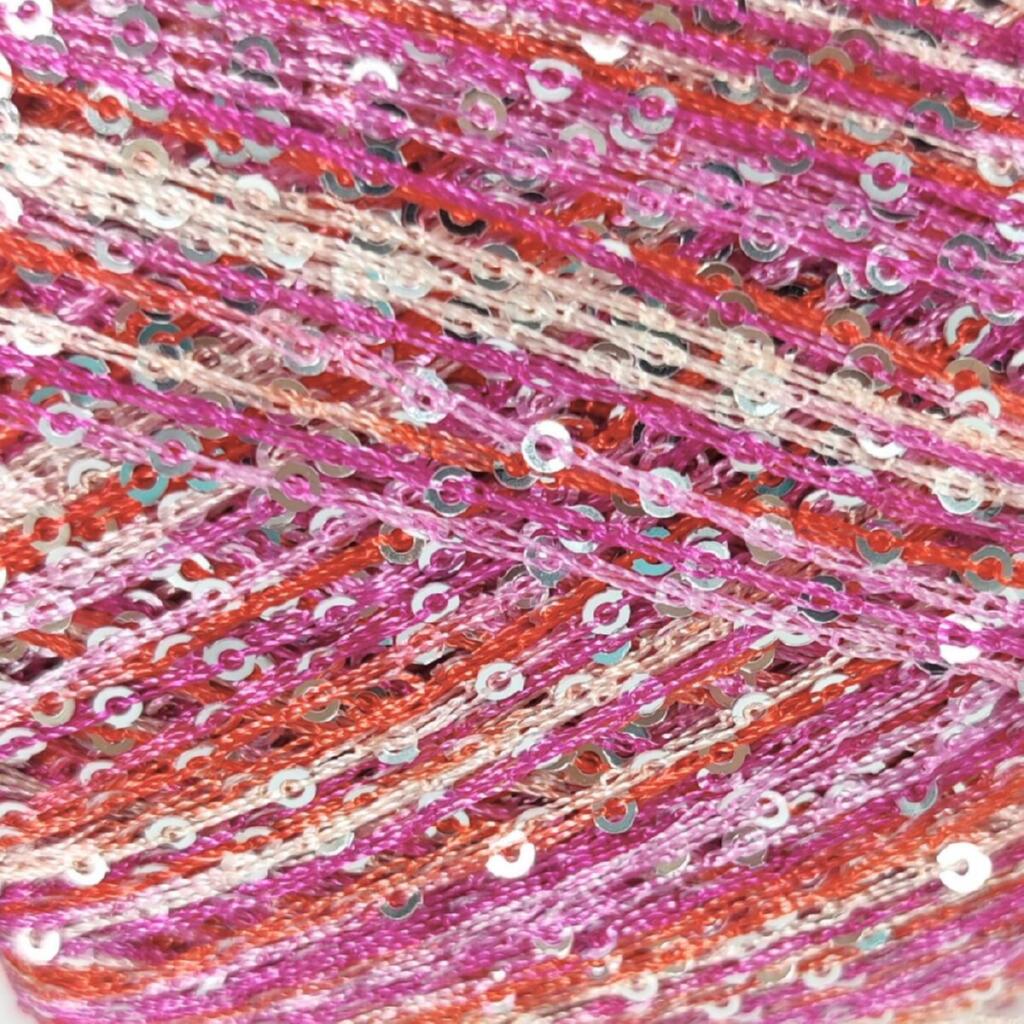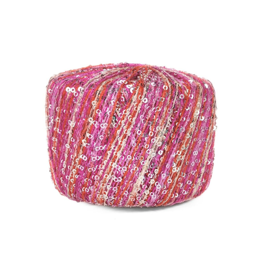 Пряжа Lana Gatto Deco - декоративна фантазійна пряжа з виразним мультиколорним міксом та додаванням блискучих мікропаєток, створена для акцентних і стильних в’язаних виробів. Вона має легку об’ємну структуру та яскравий зовнішній вигляд, який робить навіть прості моделі ефектними.