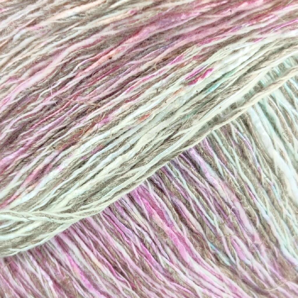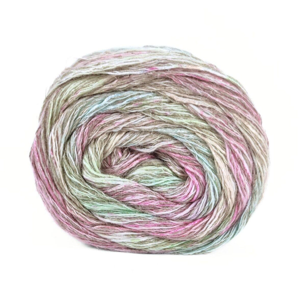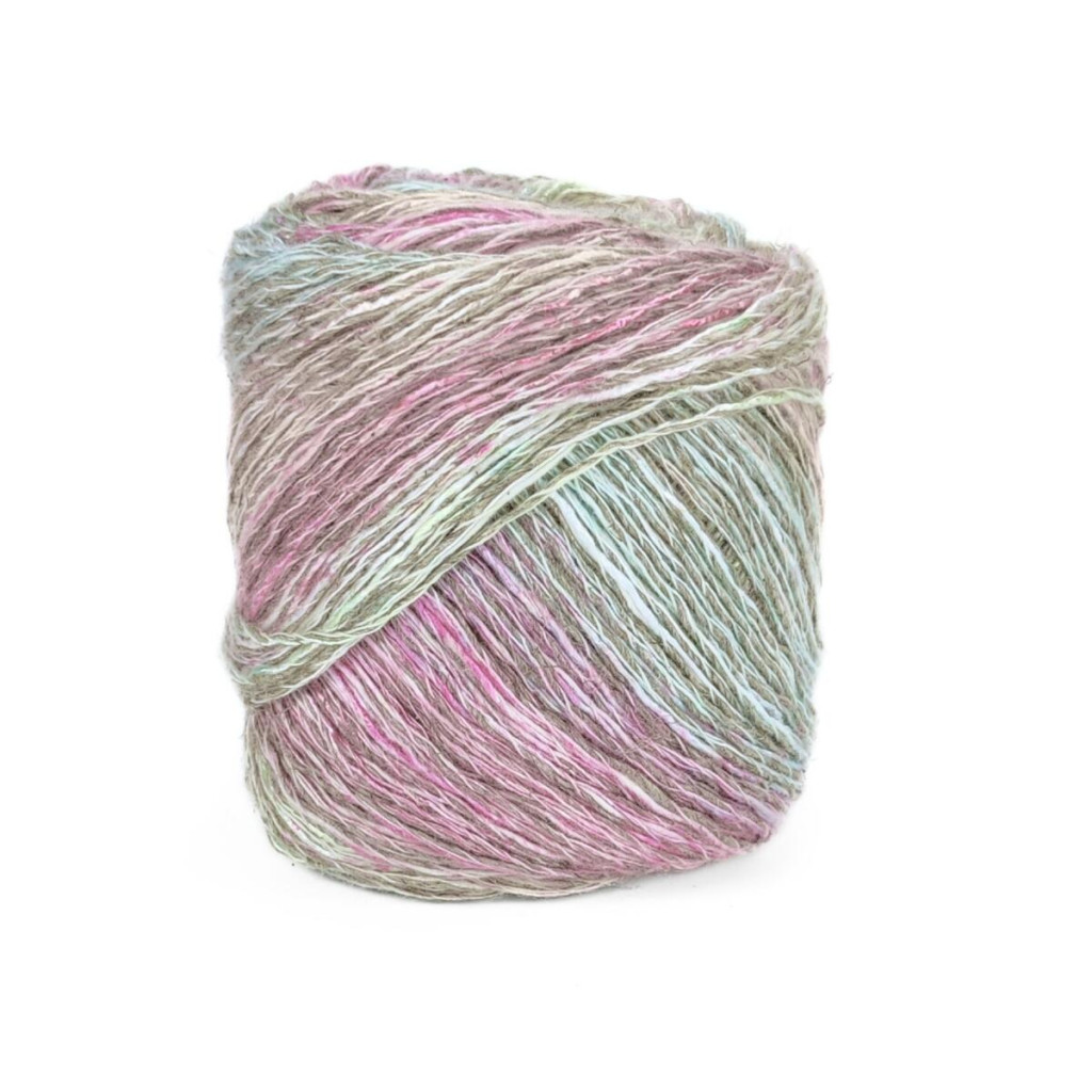 31023 Пряжа Lana Gatto Kenia, 100г - 250м, рожевий-бежевий-м'ятний мікс, 36% бавовна, 36% льон, 28% віскоза