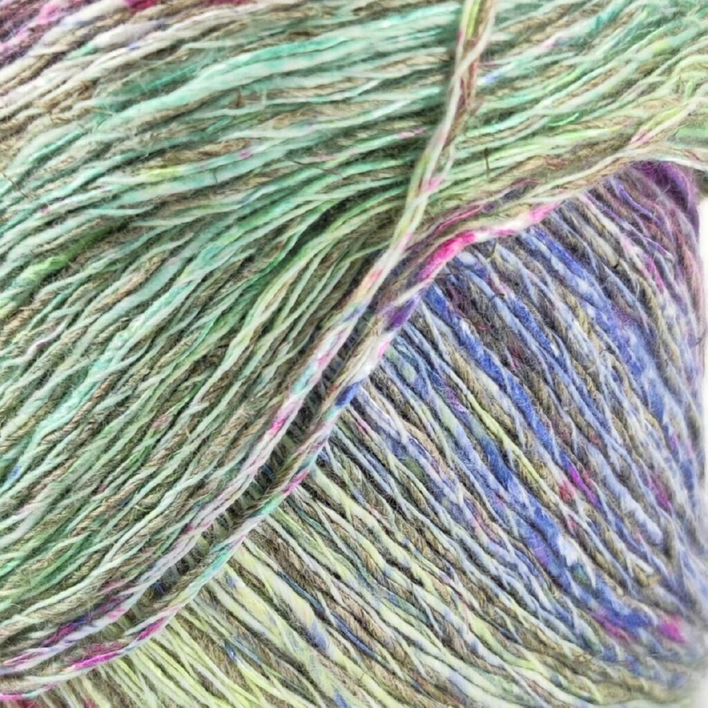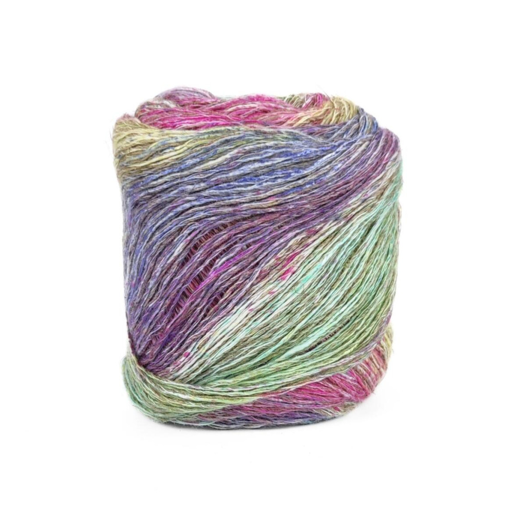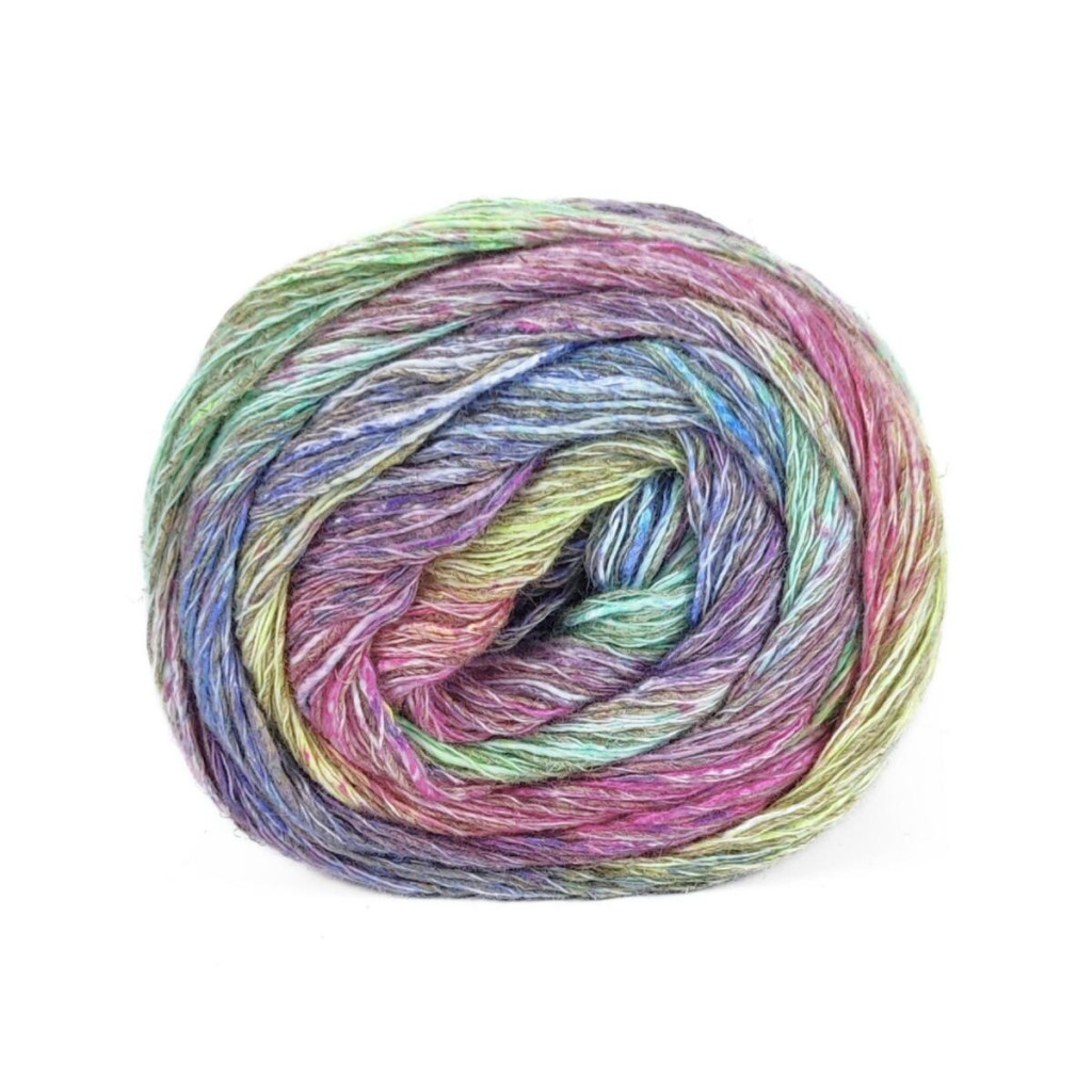 31028 Пряжа Lana Gatto Kenia, 100г - 250м, рожевий-бежевий-м'ятний-синій мікс, 36% бавовна, 36% льон, 28% віскоза