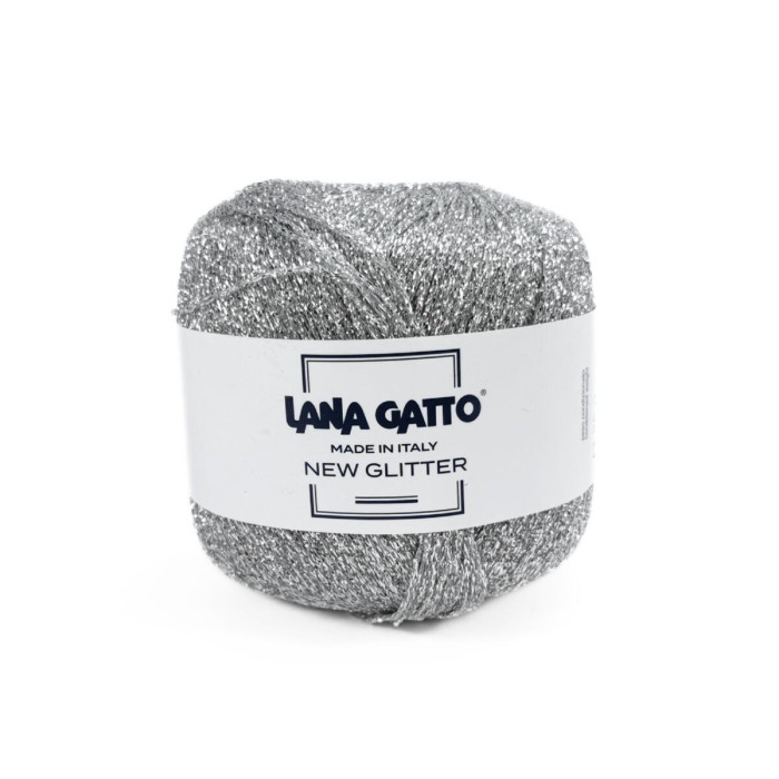 8592 Пряжа Lana Gatto New Glitter, 25г - 300м, срібло, 100% поліестер