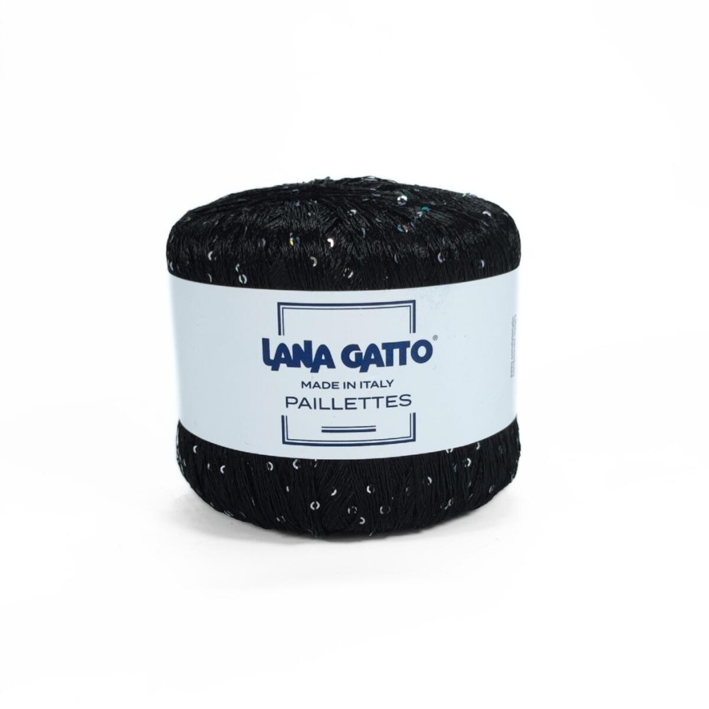 8606 Пряжа Lana Gatto Paillettes, 25г - 195м, чорний+паєтка голографічна, 100% поліестер