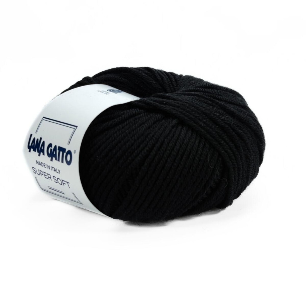 10008 Пряжа Lana Gatto Super Soft, 50г - 125м, чорний, 100% меринос екстрафайн