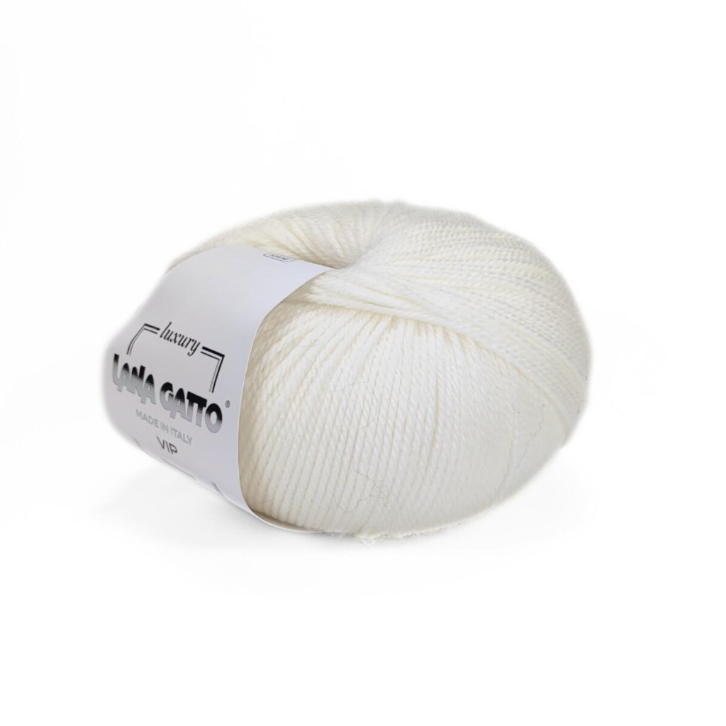 10001 Пряжа Lana Gatto Vip, 50г - 200м, білий, 80% вовна меринос екстрафайн, 20% кашемір