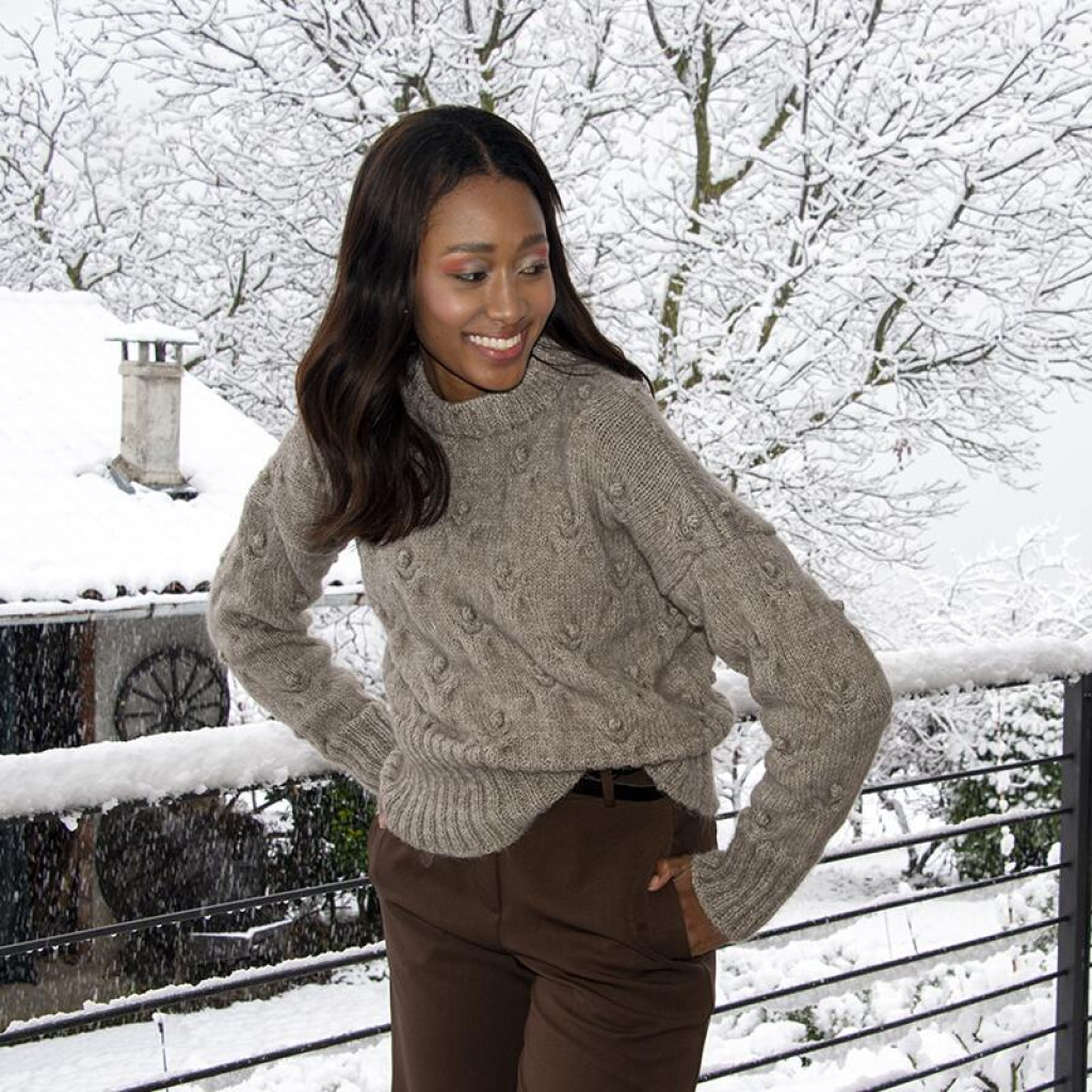Пряжа Alveare — легка та об’ємна пряжа з поєднанням мохеру й сучасної мікрофібри, створена для м’яких, повітряних і комфортних в’язаних виробів. Вона формує ніжне полотно з приємною пухнастою фактурою та рівномірною структурою.