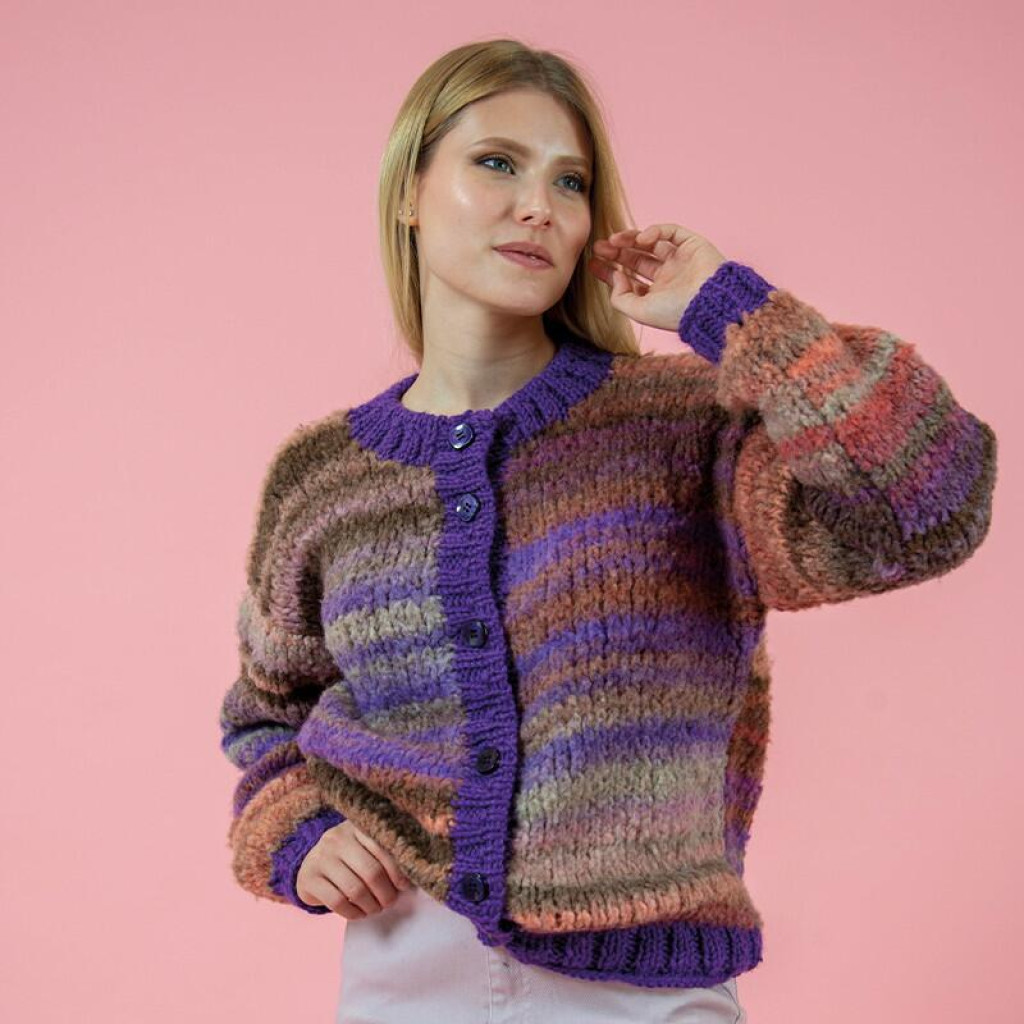 Giove підходить для в’язання светрів, кардиганів, жилетів, пледів, шарфів, шапок та інших виробів для осінньо-зимового сезону. Великий формат мотка зручний для масштабних проєктів і дозволяє працювати без частих з’єднань нитки.