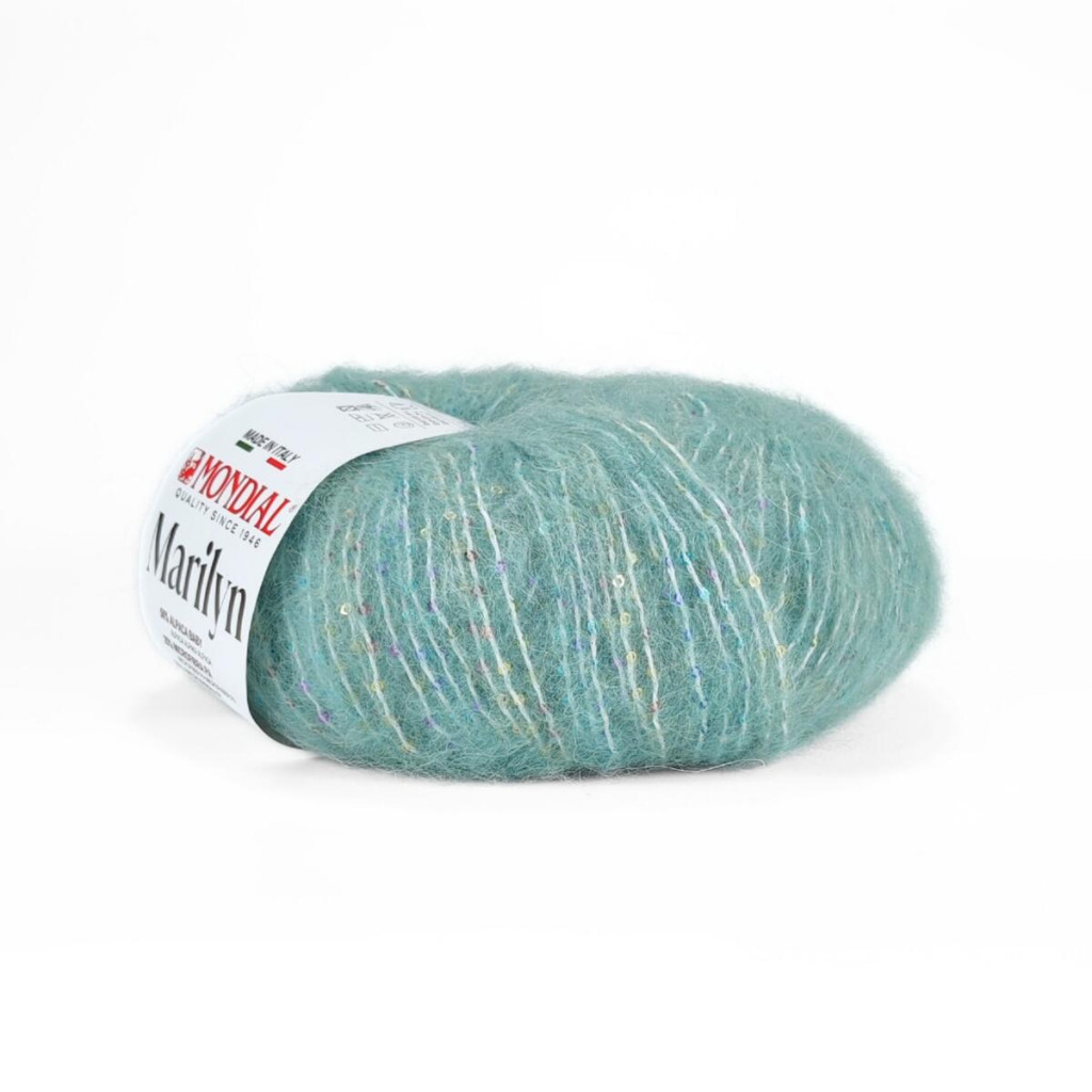 Пряжа Mondial Marilyn - м’яка та комфортна пряжа з поєднанням натуральної альпаки й сучасних мікрофібр та із кольоровими паєтками, створена для теплих і водночас легких в’язаних виробів. Вона має приємну, злегка пухнасту текстуру та формує рівне, акуратне полотно з хорошою драпіровкою.
