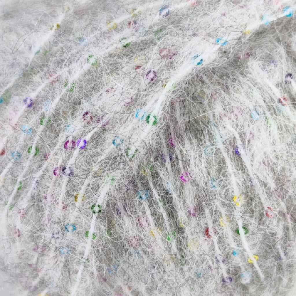 Пряжа Mondial Marilyn - м’яка та комфортна пряжа з поєднанням натуральної альпаки й сучасних мікрофібр та із кольоровими паєтками, створена для теплих і водночас легких в’язаних виробів. Вона має приємну, злегка пухнасту текстуру та формує рівне, акуратне полотно з хорошою драпіровкою.