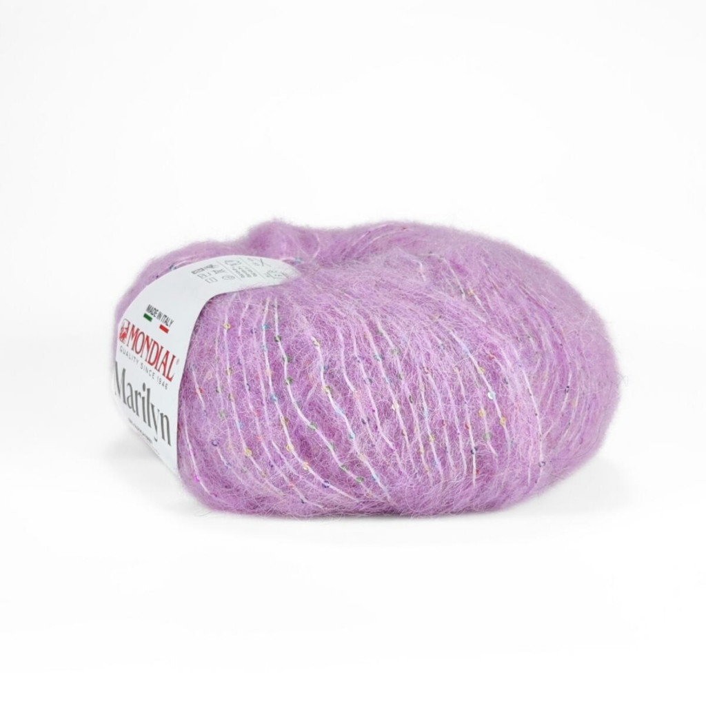 Пряжа Mondial Marilyn - м’яка та комфортна пряжа з поєднанням натуральної альпаки й сучасних мікрофібр та із кольоровими паєтками, створена для теплих і водночас легких в’язаних виробів. Вона має приємну, злегка пухнасту текстуру та формує рівне, акуратне полотно з хорошою драпіровкою.
