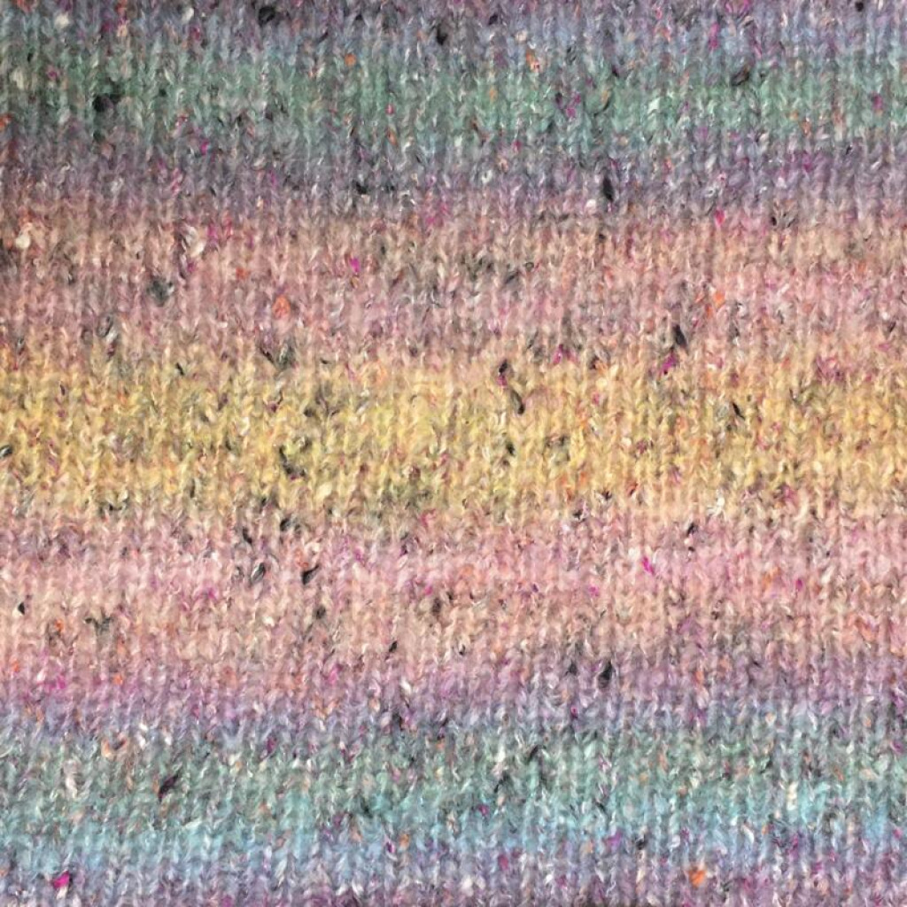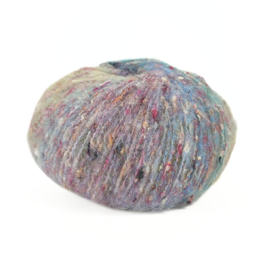 Мериносова вовна забезпечує м’якість, тепло й природну еластичність, бавовна додає комфорту та повітропроникності, а мікрофібра PA і PL підвищує міцність, стабільність і зносостійкість полотна. Твідові вкраплення рівномірно розподілені по нитці та ефектно проявляються навіть у простому в’язанні.