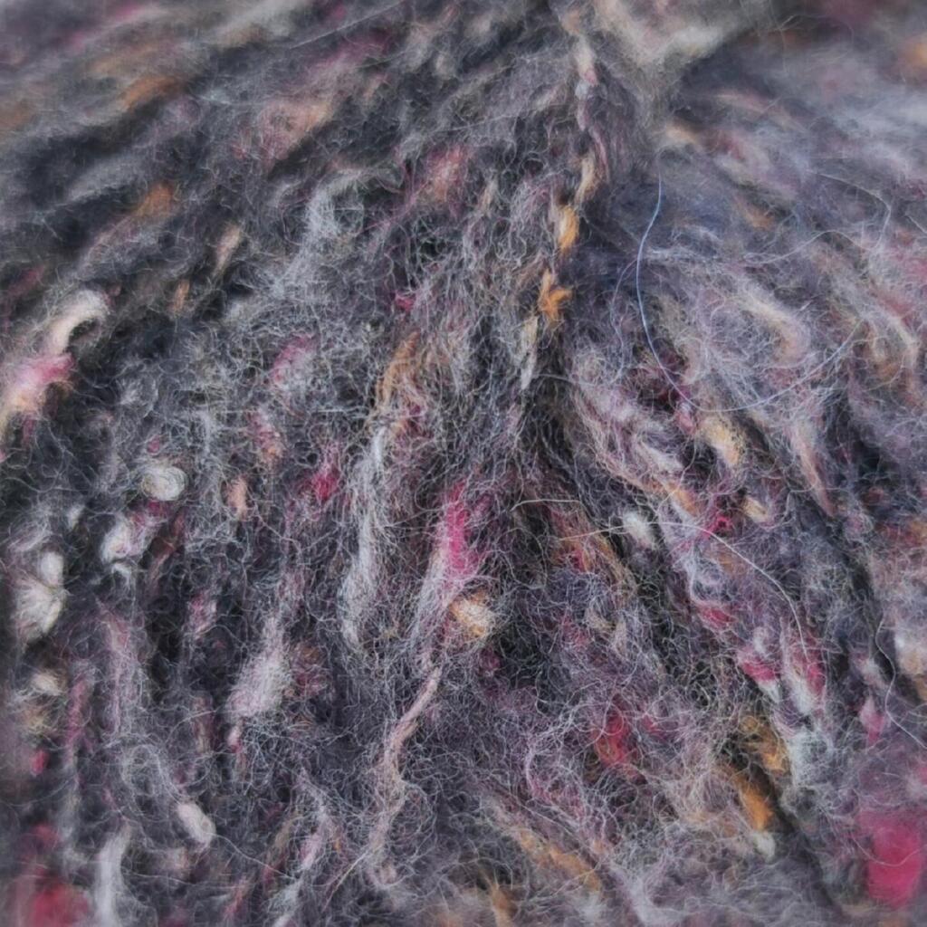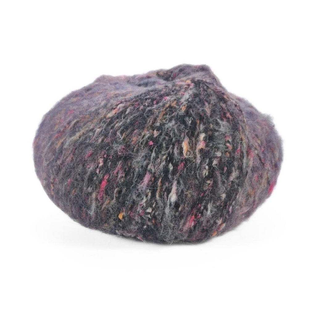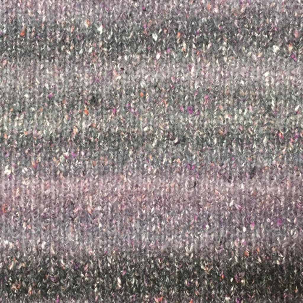 Мериносова вовна забезпечує м’якість, тепло й природну еластичність, бавовна додає комфорту та повітропроникності, а мікрофібра PA і PL підвищує міцність, стабільність і зносостійкість полотна. Твідові вкраплення рівномірно розподілені по нитці та ефектно проявляються навіть у простому в’язанні.