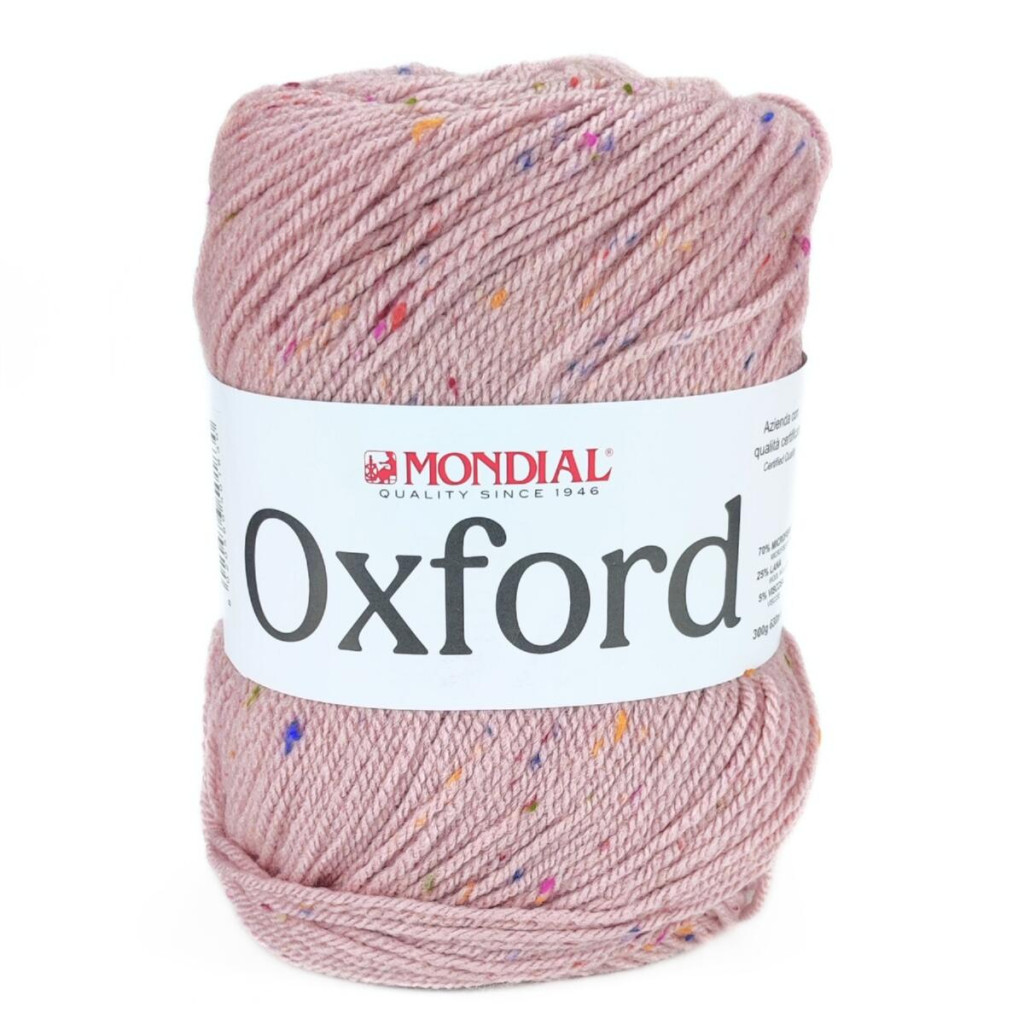 Mondial Oxford підходить для в’язання светрів, кардиганів, жилетів, пледів, шарфів, шапок і домашнього текстилю. Великий формат мотка зручний для масштабних проєктів і дозволяє працювати без частих з’єднань нитки.
