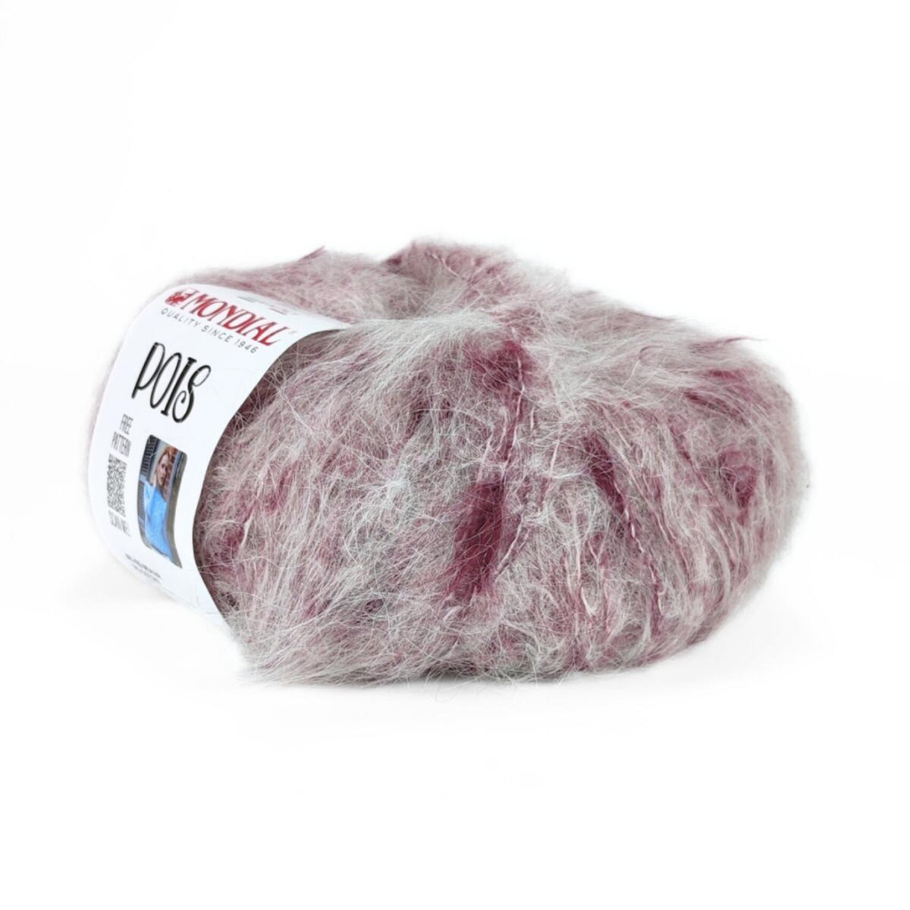 Пряжа Mondial Pois — оригінальна фантазійна пряжа з високим вмістом мохеру, яка вирізняється легкою пухнастою текстурою та декоративним ефектом. Нитка формує м’яке, об’ємне полотно з виразним характером і приємними тактильними відчуттями.