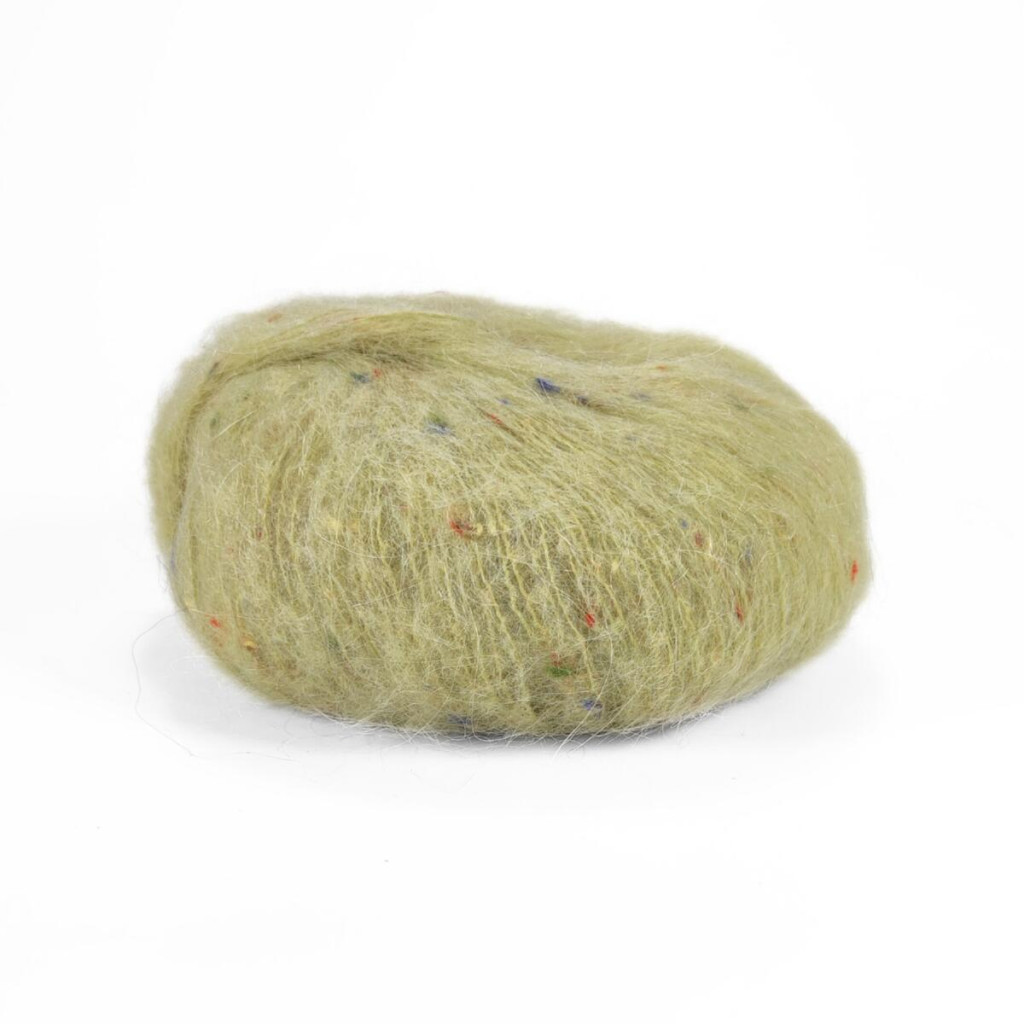 709 Пряжа Mondial Tweedy, 25г - 183м, зелений чай, 40% кід мохер, 20%, альпака бебі, 36% мікрофібра PА, 4% віскоза