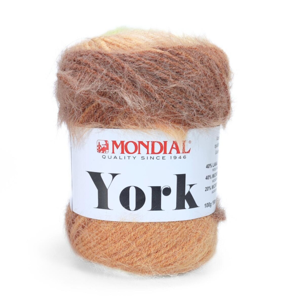 Пряжа Mondial York - універсальна та практична пряжа з поєднанням натуральної вовни й сучасних мікрофібр, створена для теплих і зносостійких в’язаних виробів. Вона має рівну, щільну структуру, добре лягає у петлі та формує акуратне, стабільне полотно.