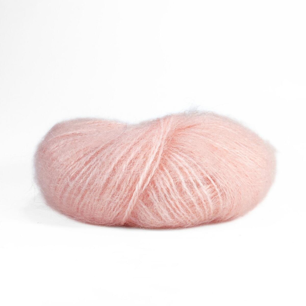Кід мохер надає пряжі характерної пухнастості, легкості й теплоізоляційних властивостей, а акрил забезпечує стабільність нитки, міцність і зручність у догляді. Завдяки такому складу вироби виходять теплими, але не важкими, добре тримають форму та комфортні у носінні.