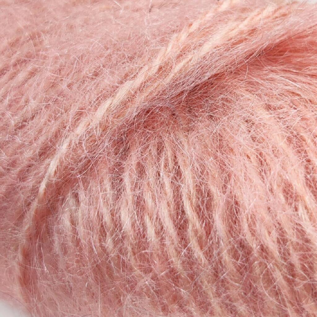 Кід мохер надає пряжі характерної пухнастості, легкості й теплоізоляційних властивостей, а акрил забезпечує стабільність нитки, міцність і зручність у догляді. Завдяки такому складу вироби виходять теплими, але не важкими, добре тримають форму та комфортні у носінні.