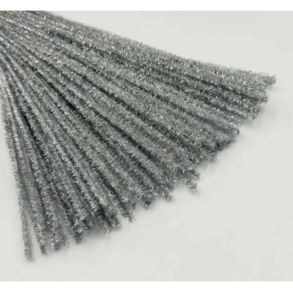 В-003 Чарівна Мить Синельний дріт 6x300 мм - срібний люрекс (в упаковці 150 шт)