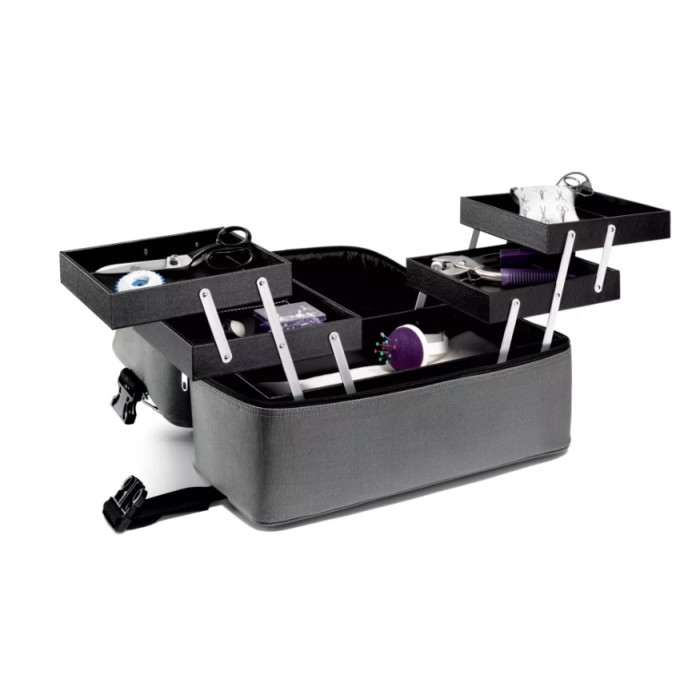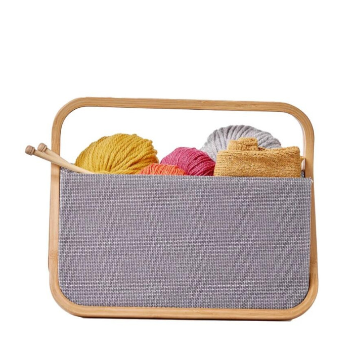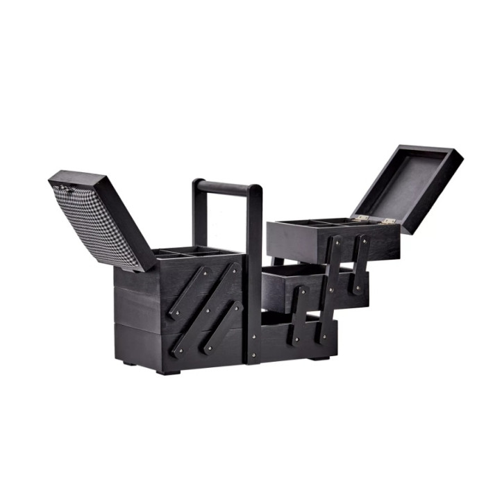 612574 Дерев'яна шкатулка для шиття розмір M, чорна з білою тканининою в клітинку, 36x19x30 см, Prym