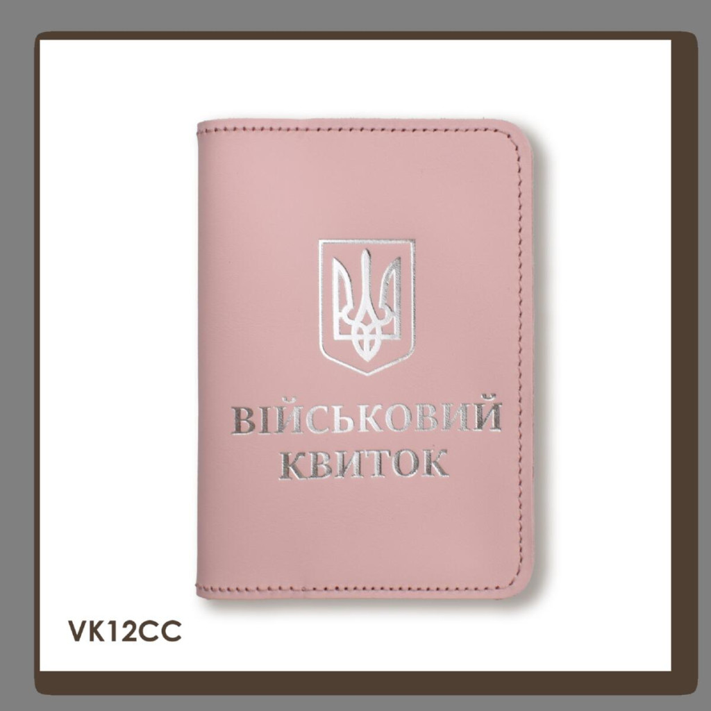 VK12CC Babylon Обкладинка для військового квитка з Гербом 10x14 см рожева, срібне тиснення, шкіра