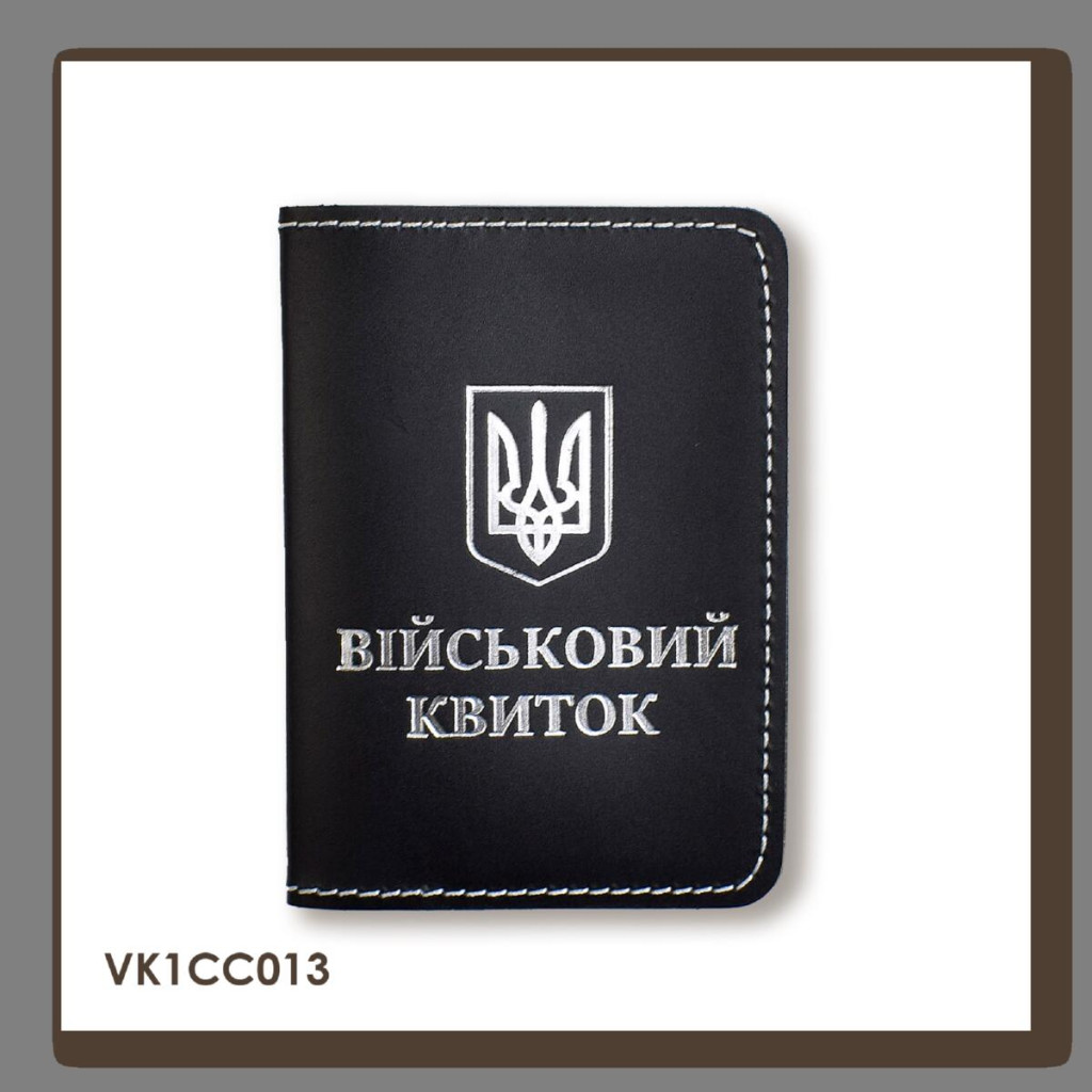 VK1CC013 Babylon Обкладинка для військового квитка з Гербом 10x14 см чорна, срібне тиснення, біла нитка, шкіра