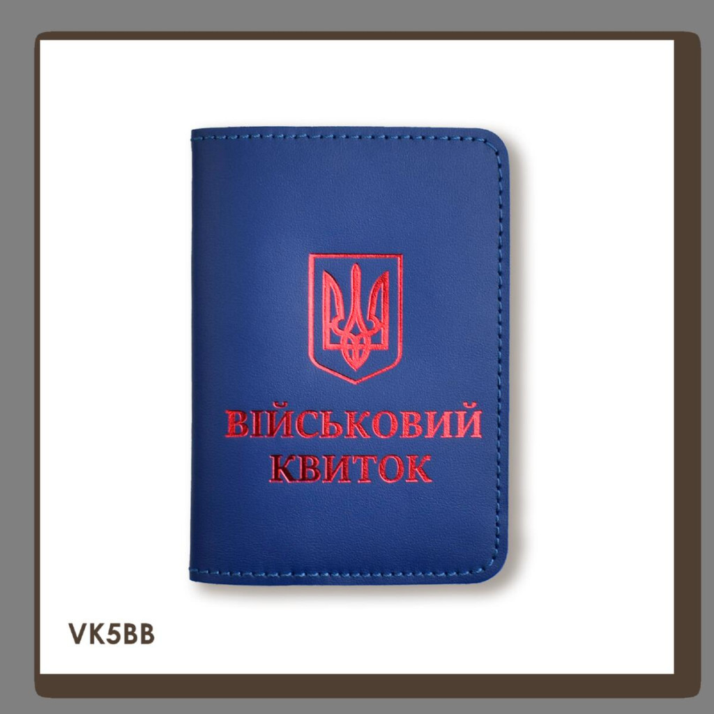VK5BB Babylon Обкладинка для військового квитка з Гербом 10x14 см синя, червоне тиснення, шкіра