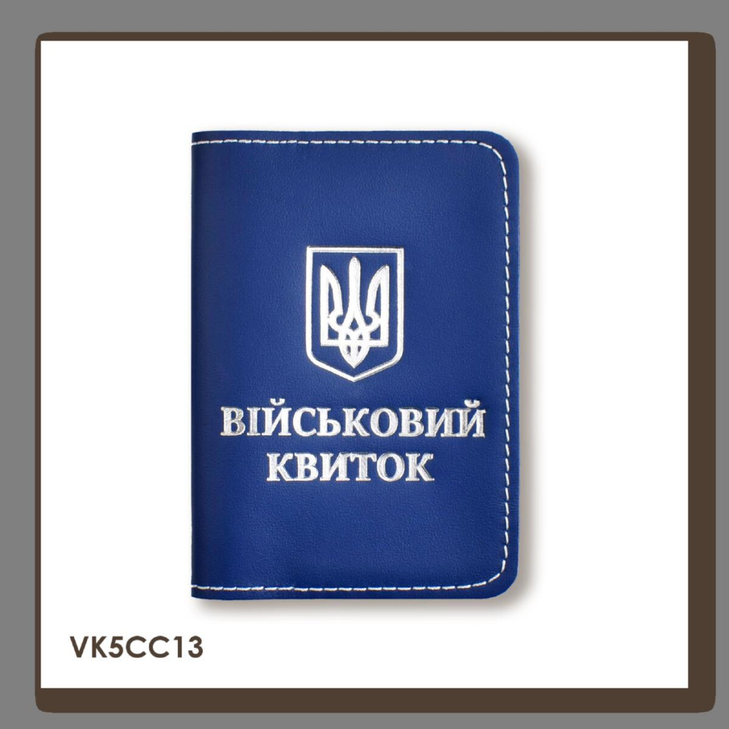 VK5CC13 Babylon Обкладинка для військового квитка з Гербом 10x14 см синя, срібне тиснення, біла нитка, шкіра