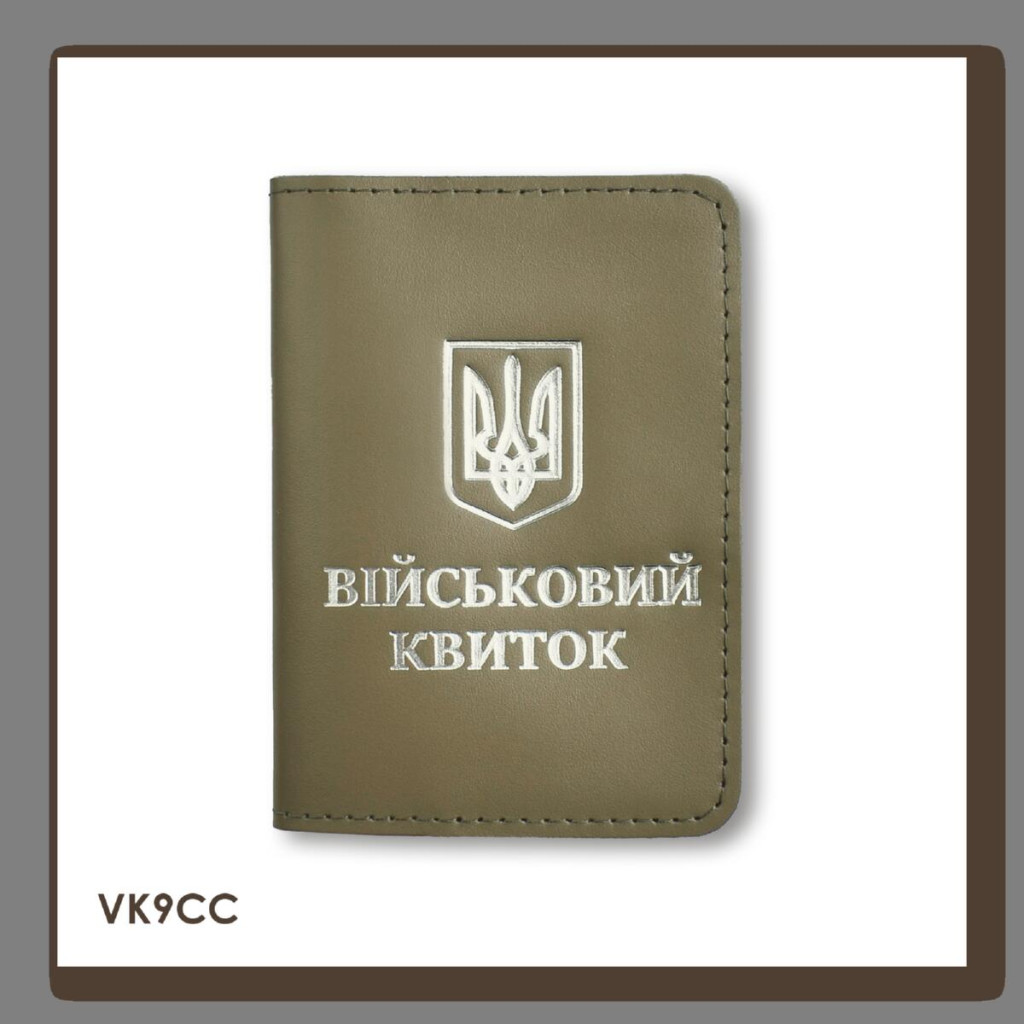 VK9CC Babylon Обкладинка для військового квитка з Гербом 10x14 см хакі, срібне тиснення, шкіра