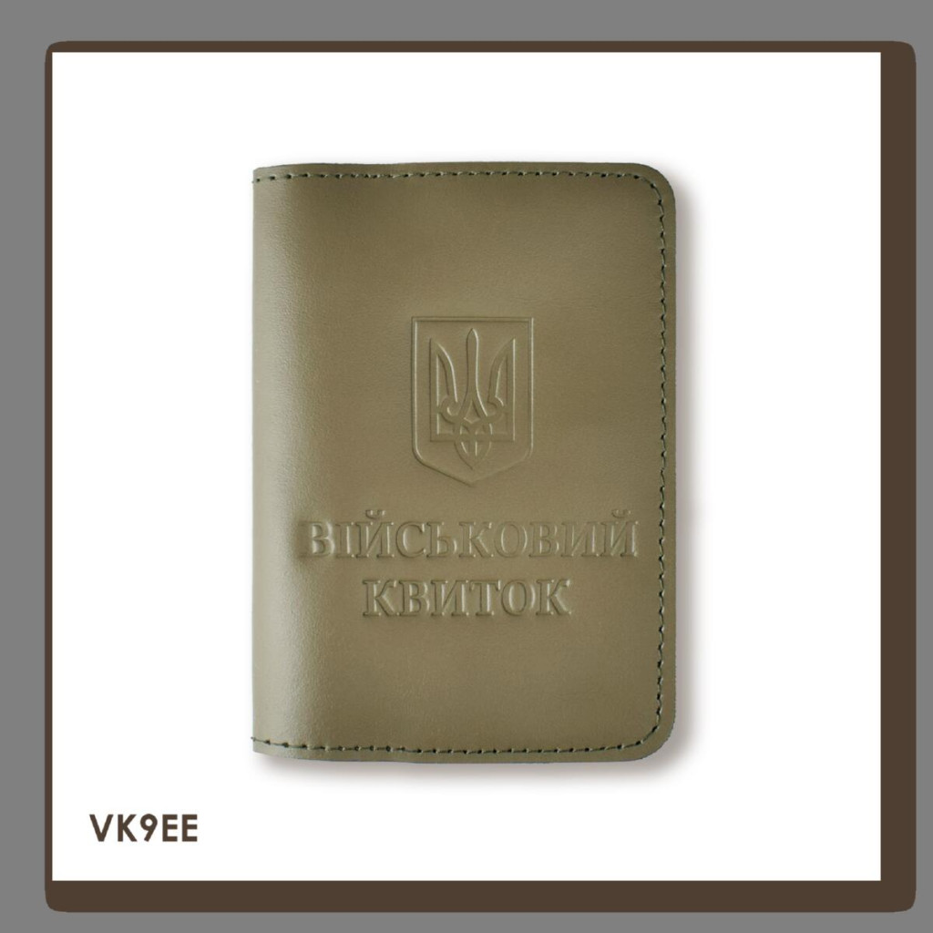 VK9EE Babylon Обкладинка для військового квитка з Гербом 10x14 см хакі, чисте тиснення, шкіра