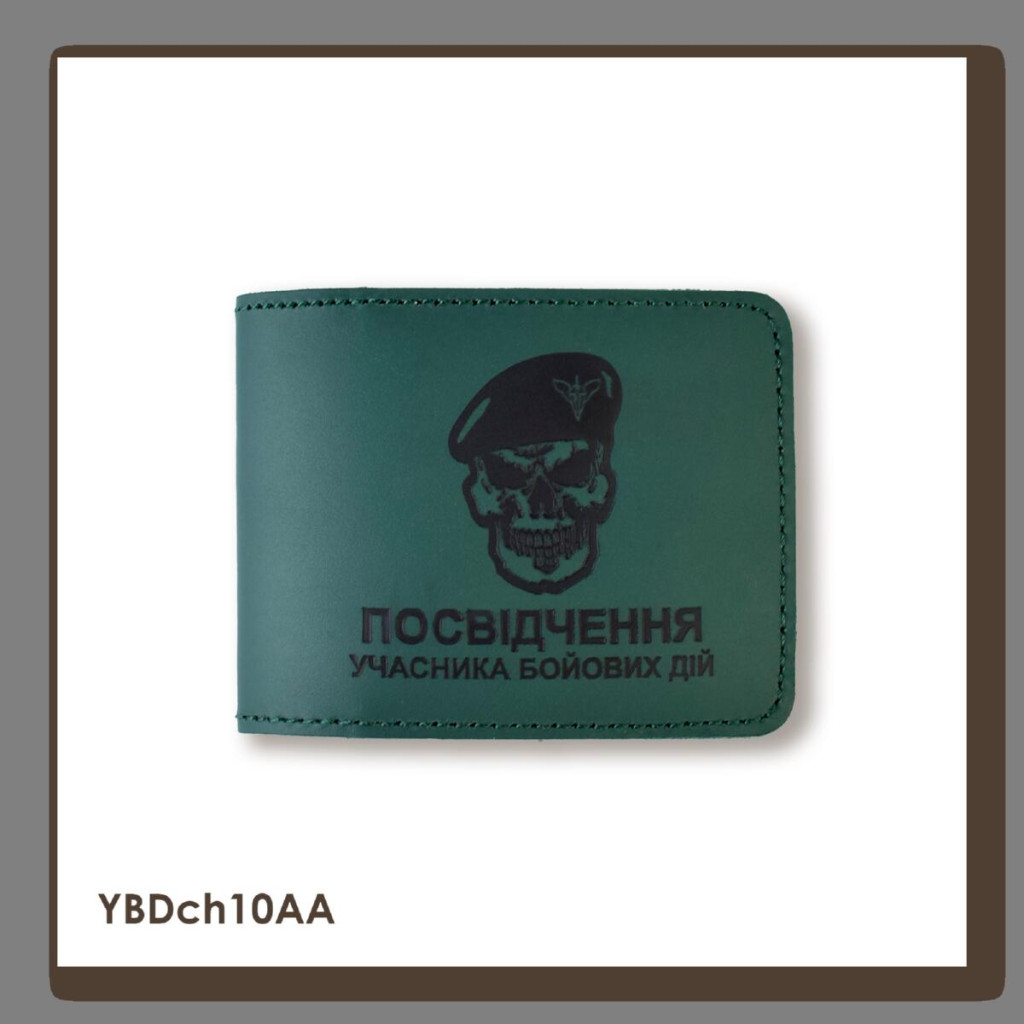 YBDch10AA Babylon Обкладинка для посвідчення УБД Череп ДШВ 11x8,5 см зелена, чорне тиснення, шкіра