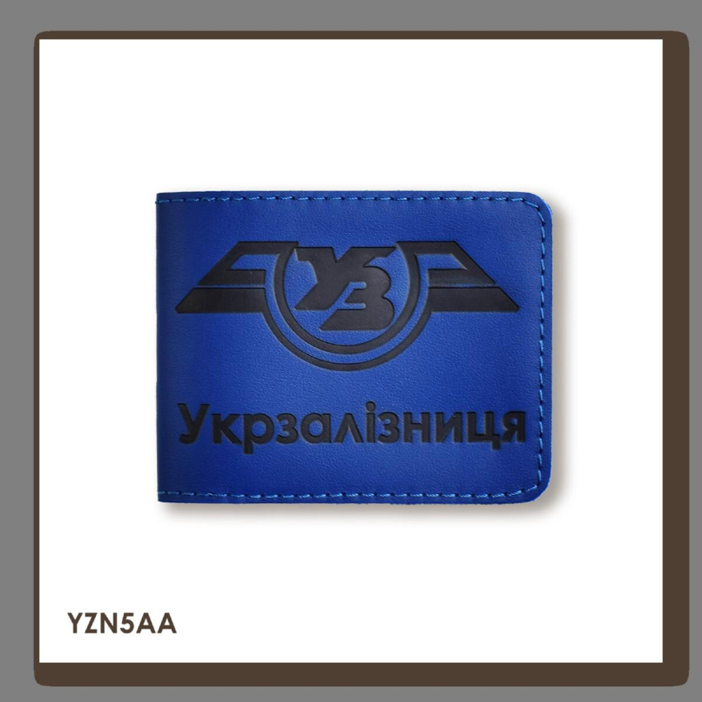 YZN5AA Babylon Обкладинка для посвідчення Укрзалізниця класична 11x8,5 см синя, чорне тиснення, шкіра