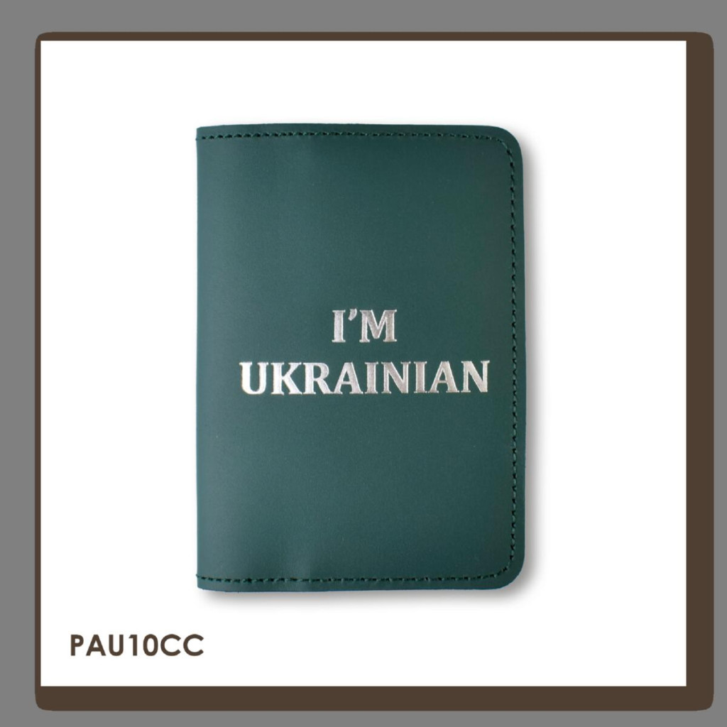 PAU10CC Babylon Обкладинка для паспорта I AM UKRAINIAN 10x14 см зелена, срібне тиснення, шкіра