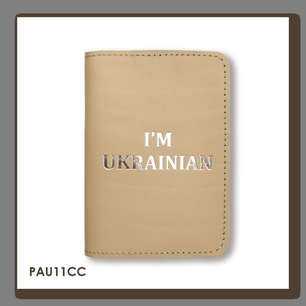 PAU11CC Babylon Обкладинка для паспорта I AM UKRAINIAN 10x14 см бежева, срібне тиснення, шкіра