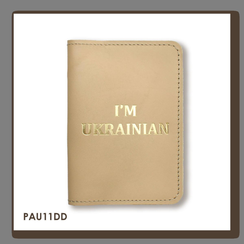 PAU11DD Babylon Обкладинка для паспорта I AM UKRAINIAN 10x14 см бежева, золоте тиснення, шкіра