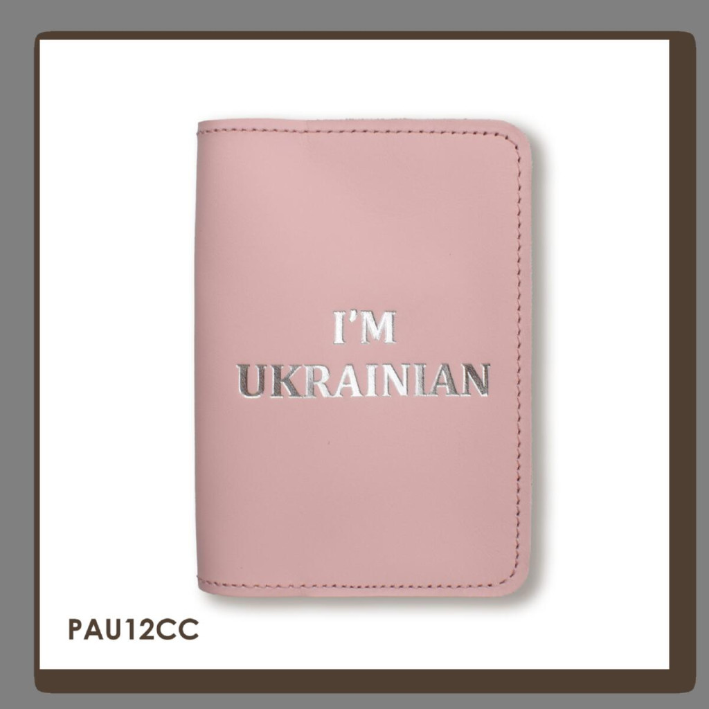 PAU12CC Babylon Обкладинка для паспорта I AM UKRAINIAN 10x14 см рожева, срібне тиснення, шкіра